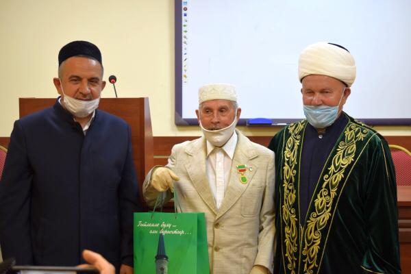 Диния Нәзарәте исеменнән галим шәхесне Татарстан Республикасының баш казые Җәлил хәзрәт Фазлыев котлады. Ул Җәгъфәр хәзрәтнең динебез юлында хезмәтләрен зур бәяләде, олуг шәхесләрдән гыйлем алып һәм безләргә күп китаби дәреслекләр бастырып, тәҗвид гыйлеменнән дәрес биргән зат диеп белдерде. Баш казый олуг бәйрәмен кичерүче хәзрәткә Диния нәзарәтенең «Халкыбызга хезмәте өчен» медален тапшырды. Бөтендөнья татар конгрессы Башкарма комитеты җитәкчесенең беренче урынбасары Шакиров Данис Фәнис улы юбилярны котлап, аны халкыбызны агарту юлында кылган хезмәтләрен югары билгеләп, аның милләт асылы булуын ассысызыклады һәм халыкара оешманың иң югары билгесе – “Татар милләтенә күрсәткән олы хезмәтләре өчен” медале белән бүләкләде. Ул диплом алучы шәкертләрне котлап, мәгърифәт юлларыгыз эзлекле булсын иде диеп котлады. Ул милли гореф-гадәтләребезне онытмаска, динне һәм милләтне һәрвакыт бергә, бер-берсеннән аермыйча алып баруны сорады.
