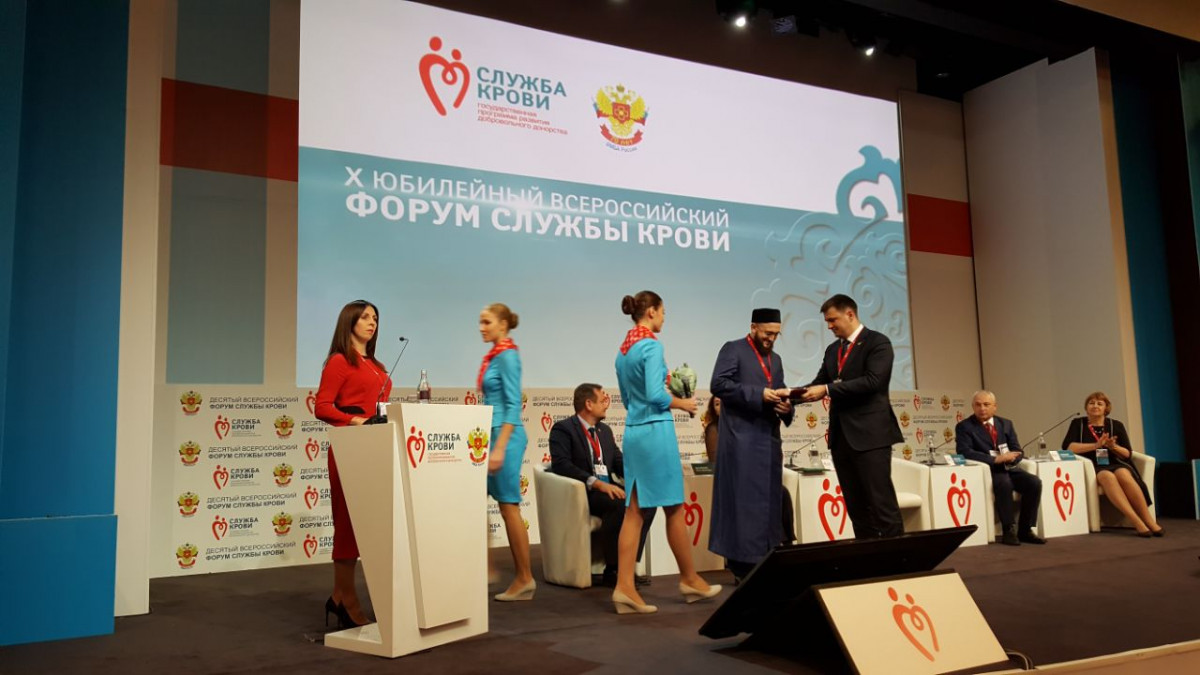 Кан һәм аның компонентларын ихтыяри бирүне (донорлык) массакүләм үстерүгә юнәлдерелгән Кан тапшыру хезмәте үсеше киң масштаблы дәүләт программасын тормышка ашыру кысаларында, бүген Татарстан мөфтие Камил хәзрәт Сәмигуллин Медицина-биология федераль агентлыгы чакыруы буенча Х юбилей Россиякүләм Кан тапшыру хезмәте форумында катнашты. Монда аны ведомствоның мактаулы бүләге – Медицина-биология федераль агентлыгының “Донорлык хәрәкәтенә булышлык өчен” медале белән бүләкләделәр. Әлеге чарада Россия Кан тапшыру хезмәте үсеше программасын әйдәп баручылар, РФ Сәламәтлек саклау министрлыгы һәм Медицина-биология федераль агентлыгы вәкилләре, Кан тапшыру учреждениесе җитәкчеләре, донорлар, иҗтимагый оешмаларда хезмәт куючылар катнашты.