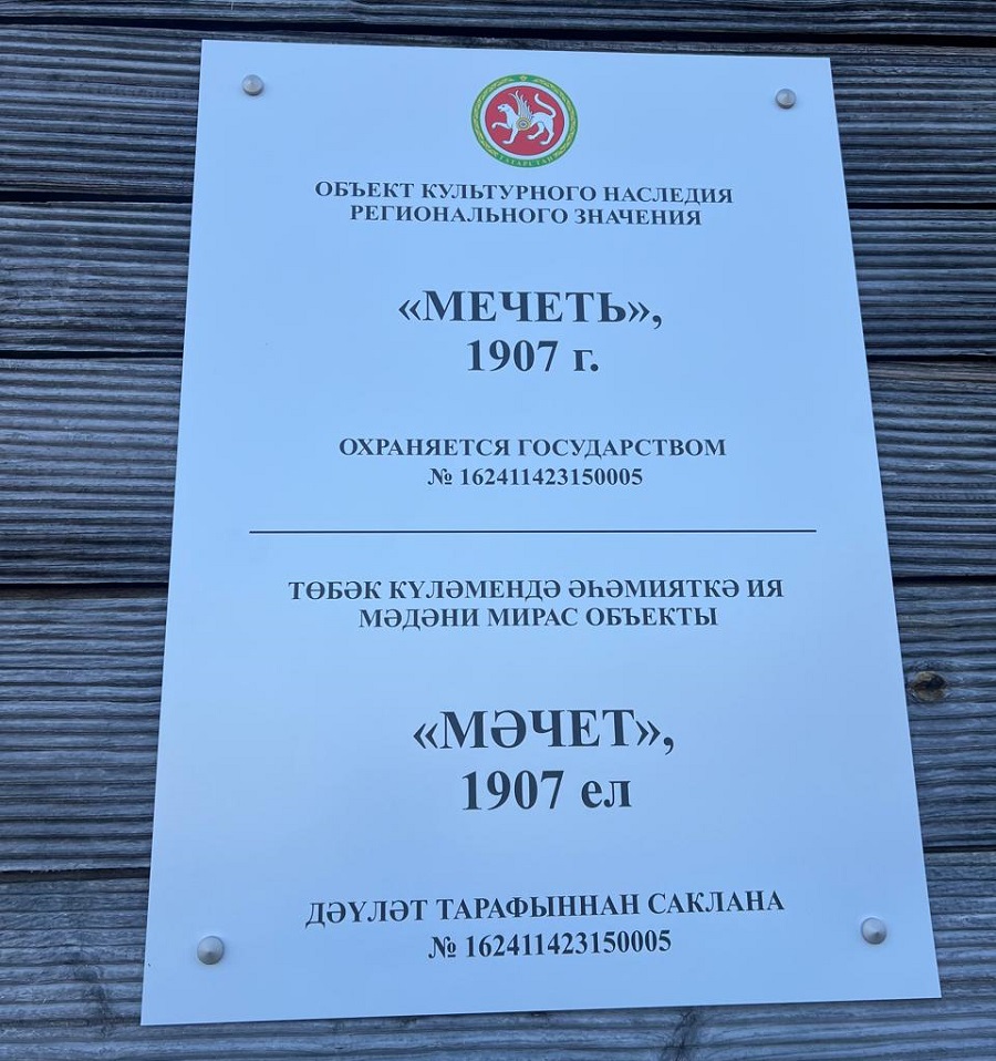 Шунысын да билгеләп үтәргә кирәк, XX гасыр башында төзелгән тарихи таш мәчет 2024нче елда Татарстан Республикасы мәдәни мирас биналарының бердәм дәүләт реестрына кертелгән. Хәзер моны мәчет ишеге янына куелган истәлек тактасы раслый.