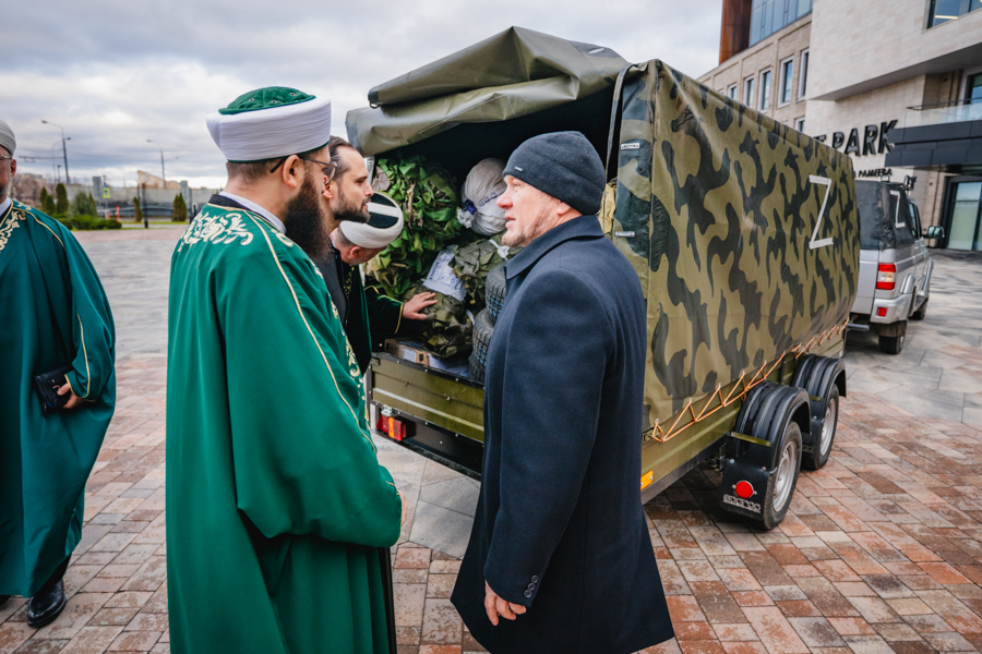 2025нче елда алгы сызыктагы солдатларга җибәрелгән гуманитар йөк арасында иң әһәмиятлесе булып УАЗ (буханка) машинасы нигезендә җиһазландырылган 3 мобиль мәчет тора. Автомобильләр “Каһарман” хәйрия акциясе кысаларында битараф булмаган дин кардәшләребездән җыелган акчаларга сатып алынды. Фронтка “тәгәрмәчле мәчет”ләр җибәрү тәҗрибәсе Россия өчен уникаль булды – Татарстан мөфтиятеннән соң аны илебезнең башка мөфтиятләре дә файдаланды. Моннан тыш, фронтка 6 автомобиль һәм 5 мотоцикл җибәрелде. МХОга Татарстан Диния Нәзарәтеннән барлыгы 15 машина һәм 9 мотоцикл тапшырылды.
