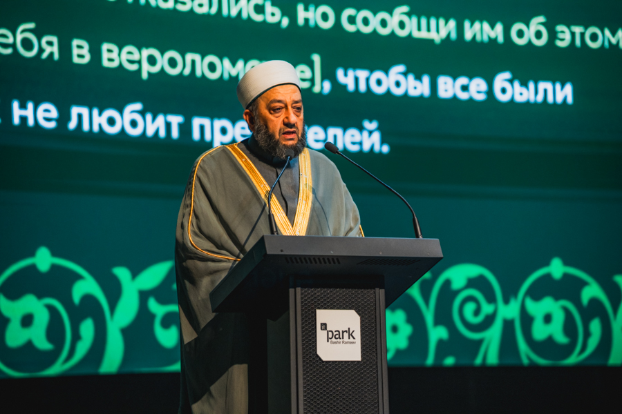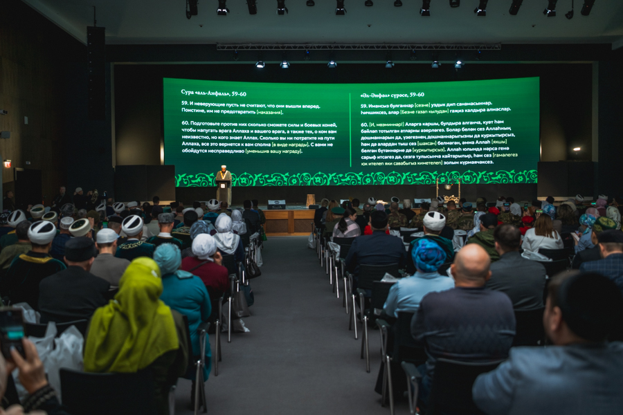Җыелыш Коръән аятьләре уку белән башланып китте: “Әл-Әнфәл” сүрәсенең 55-66нчы аятьләрен Хафиз-Курра, Пәйгамбәребезнең ﷺ турыдан-туры нәсел дәвамчысы, Нәзарәтнең кулъязма Коръән әзерләү буенча комиссия әгъзасы Мәэмүн әр-Рави укыды. Әлеге аятьләр юкка гына сайлап алынмаган – аларда Аллаһының дошманнарына каршы сугышлар һәм иман китерүчеләргә җиңү сөенече турында хәбәр ителә.