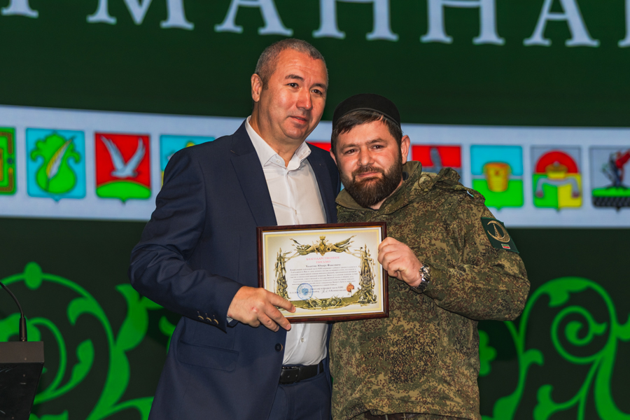 Тантаналы чара барышында махсус хәрби операция сугышчыларына, шулай ук аларга гамәли яктан ярдәм итүче имамнарга һәм волонтерларга хөрмәт күрсәтелде. Иң актив катнашучыларга бүләкләр – Татарстанның сугыш хәрәкәте ветераннары берләшмәсеннән “Фронтка ярдәм өчен” медальләре һәм Татарстан мөселманнары Диния нәзарәтеннән рәхмәт хатлары тапшырылды.