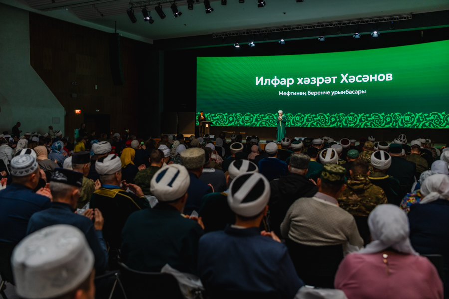 Алга таба җыелыш кунакларына Диния Нәзарәте Рәисе, Татарстан Республикасы Мөфтие Камил хәзрәт Сәмигуллин мөрәҗәгать итте. Үз чыгышында ул 2025нче елның Нәзарәт тарафыннан “Каһарманнар елы” дип игълан ителүен искә алды, үтеп баручы елда мөфтиятнең махсус хәрби операциядә катнашучыларга һәм аларның гаиләләренә ярдәм итүе буенча алып барылган эшчәнлеккә тукталды.