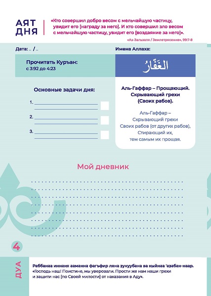 Нәзарәтнең «Хозур» нәшрияты әлеге басма гыйбадәт кылуда камиллеккә ирешергә омтылучы һәм вакыт мәсьәләсендә бәрәкәткә ирешергә теләүче мөселманнар өчен файдалы булыр дигән өметтә кала.