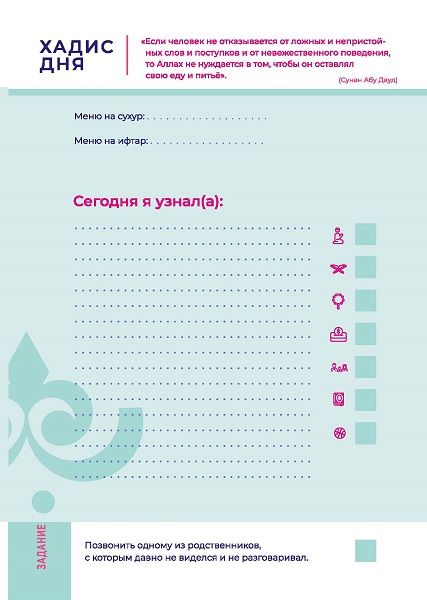 Изге Рамазан ае алдыннан Татарстан мөселманнары Диния нәзарәтенең «Хозур» нәшрият йорты «Рамазан көндәлеге»н тәкъдим итә. Бу уникаль көндәлек Рамазан чорында вакытны дөрес бүләргә, көнкүреш мәшәкатьләрен хәл итү белән бергә, гыйбадәткә игътибарны арттырырга ярдәм итә.