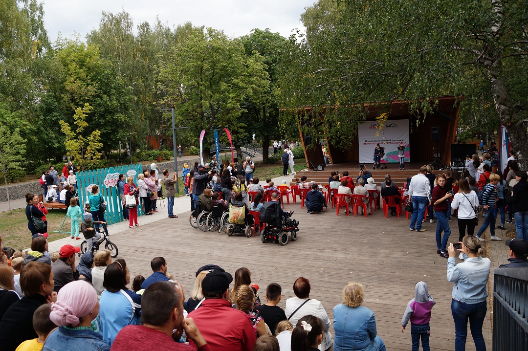 На сцене парка с творческими номерами выступили дети и взрослые с ограниченными физическими возможностями. Так, с замиранием сердца зрители слушали исполнение двух песен Тимура Фазлеева. Мальчик страдает ДЦП и ретинопатией, которая привела к полной потере зрения.