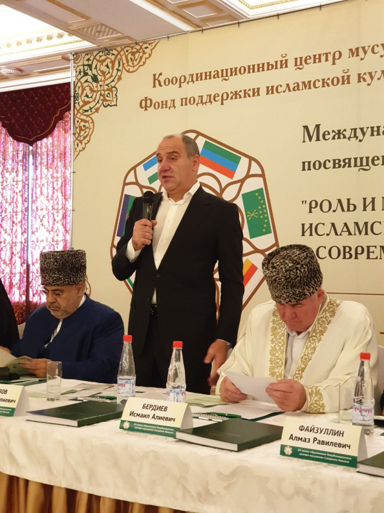 Муфтий Республики Татарстан Камиль хазрат Самигуллин и его заместитель, ректор Болгарской исламской академии и Российского исламского института Рафик хазрат Мухаметшин прибыли с рабочим визитом в Черкесск. Здесь проходит Международная конференция «Роль и место духовных ценностей исламской религии в современных условиях. Форум религиозных деятелей проходит под знаком 20-летия со дня образования Координационного центра мусульман Северного Кавказа - централизованной религиозной организации, объединяющей на добровольной основе действующие на территории Северного Кавказа муфтияты. Председателем КЦМСК является муфтий Карачаево-Черкесской Республики Исмаил хаджи Бердыев.