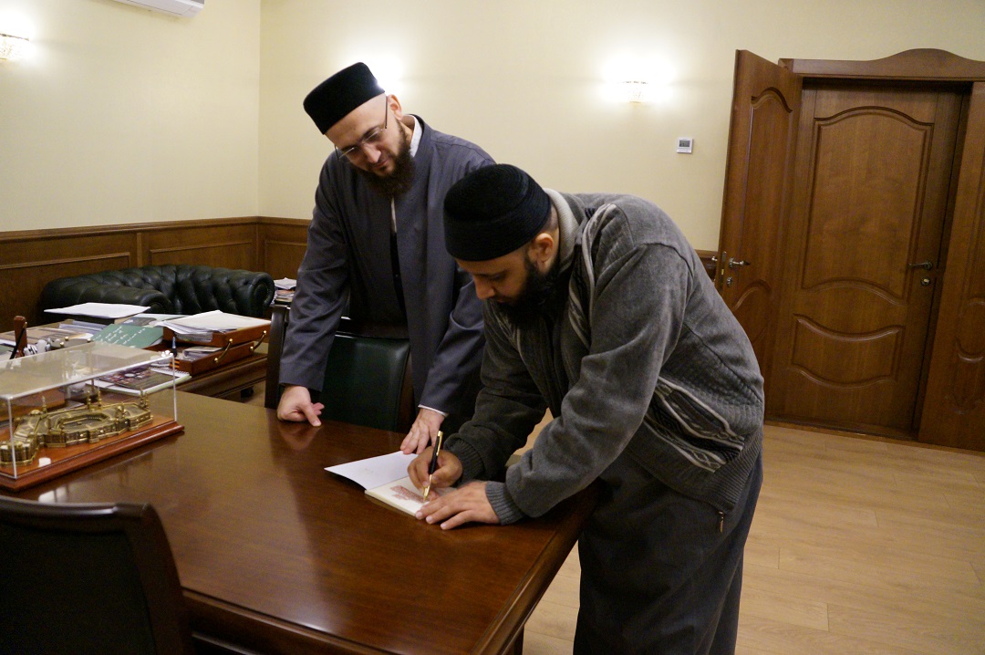 Стоит отметить, что шейх Аслам интересуется татарским духовным наследием и деятельностью Болгарской исламской академии. В память о встрече иностранный гость подарил Камилю хазрату свою книгу – акыду ан-Насафи в стихотворном изложении для удобства заучивания.