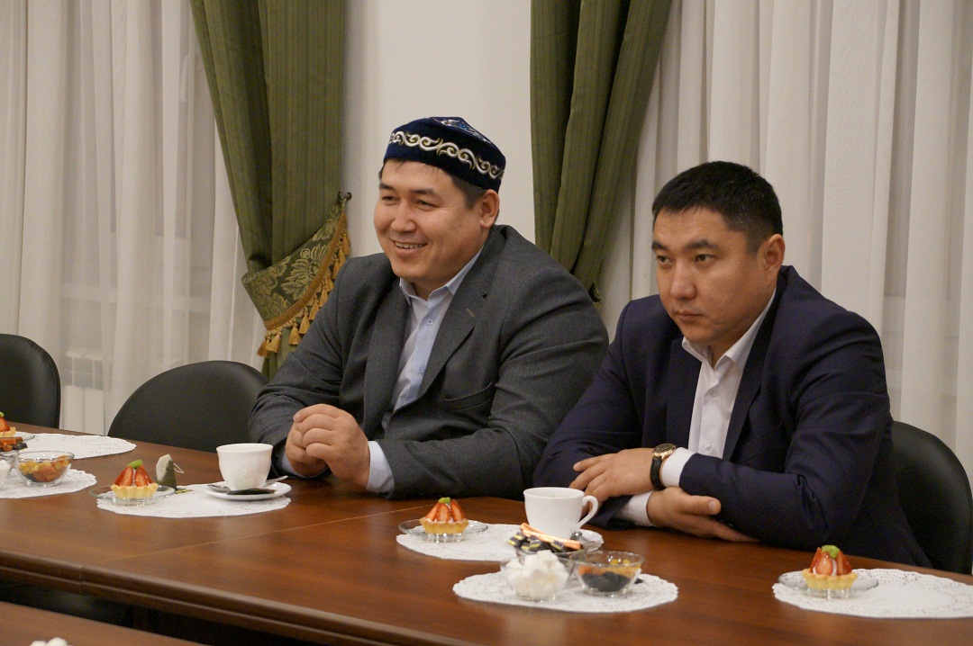 Уважаемых гостей встретили первый заместитель муфтия РТ Рустам хазрат Валиуллин и заместитель муфтия РТ по взаимодействию с официальными органами Ильфар хазрат Хасанов. В ходе беседы Ильфар хазрат рассказал о социально-ответственной, образовательной деятельности ДУМ РТ, а также поведал об успехах первого мусульманского телевидения «Хузур ТВ». В свою очередь имам ДУМК Ермек Касболатович поделился планами открытия музея Исламской культуры при Духовном культурном центре в Казахстане. Кроме того, духовные деятели выразили желание об организации совместных мероприятий и обмена опытом.