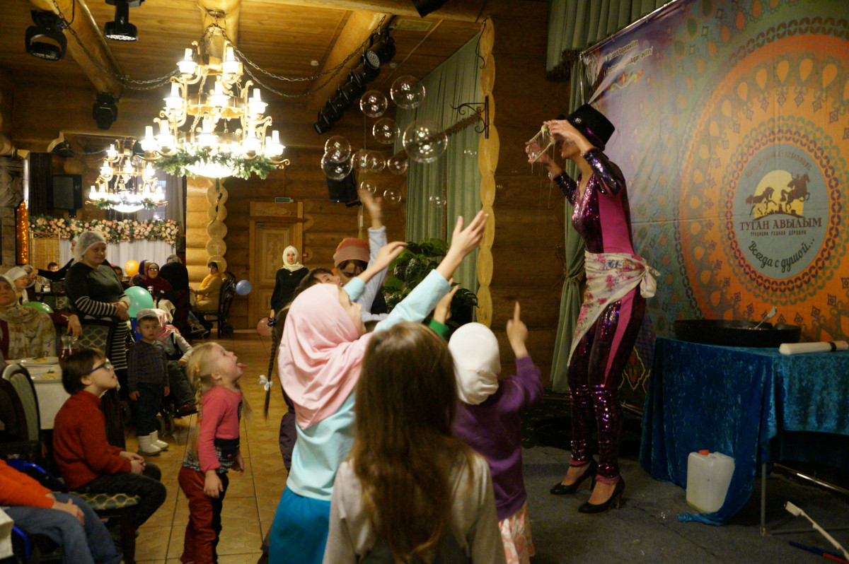 Сегодня юные подопечные Благотворительного фонда «Закят» ДУМ РТ собрались на вечера Мавлида в Казани. На тематическое мероприятие собралось около полусотни детей. Для них была организована интересная развлекательная программа с аниматором, мастер-классами и чаепитием. В начале мероприятия по традиции прочитали аяты из Священного Куръана. Затем генеральный директор фонда «Закят» Булат Марданов в своей речи напомнил о важности поминания пророка Мухаммада ﷺ, а также о необходимости использования его назиданий в жизни и поступках. Кроме того, он поблагодарил всех спонсоров, которые помогли в организации мероприятия.