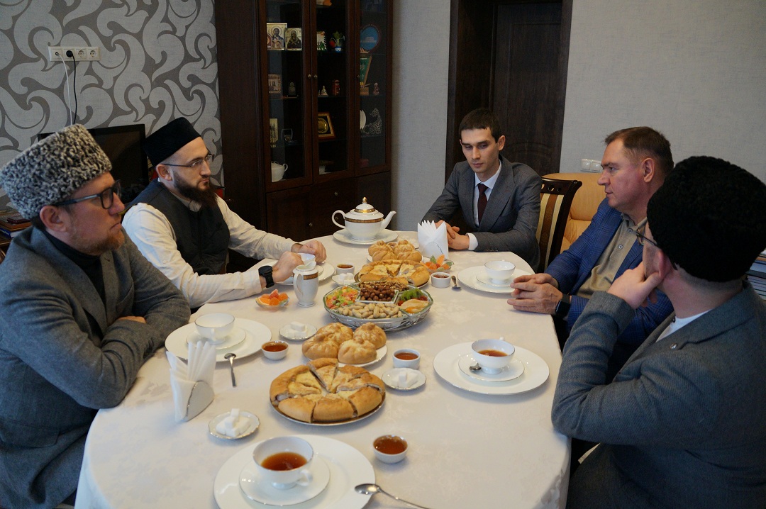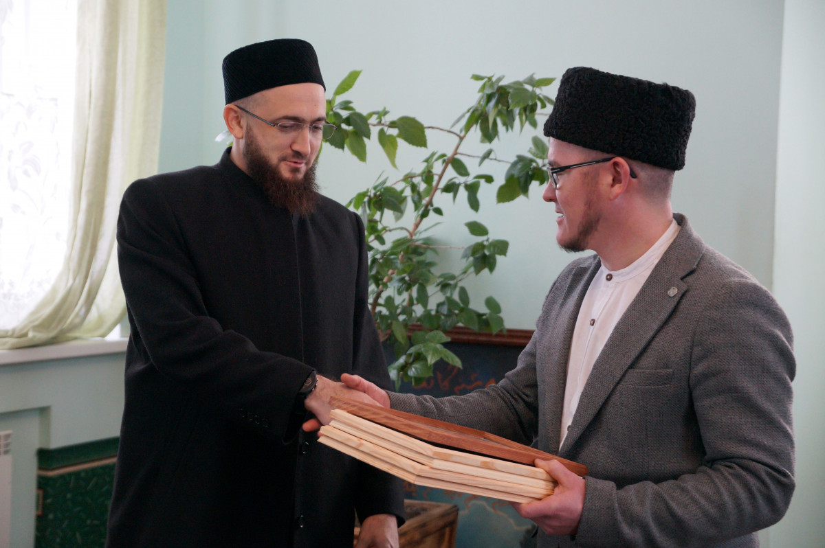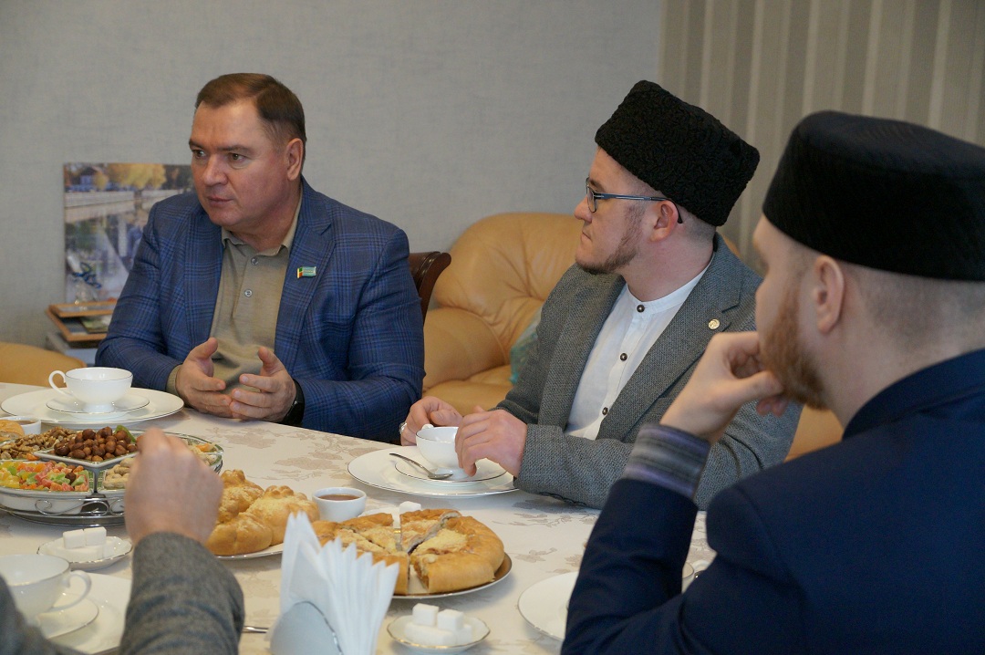 Сегодня муфтий Татарстана Камиль хазрат Самигуллин совершил поездку в Менделеевск. В рамках рабочего визита он встретился с главой Менделеевского муниципального района Валерием Чершинцевым. В ходе встречи обсудили религиозную ситуацию в районе, деятельность мусульманских организаций и мухтасибата, а также вопрос реконструкции Центральной мечети города.
