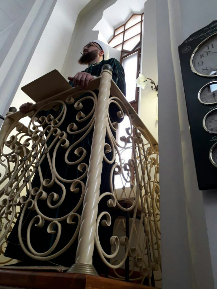 Также Камиль хазрат Самигуллин провел в Ивановской Соборной мечети джума-намаз. Пятничную молитву с участием Камиля хазрата посетили около 700 человек – мечеть была переполнена. Перед собравшимися единоверцами хазрат прочитал проповедь на тему следования Сунне и пути, указанному Пророкомﷺ. «Следуйте Сунне Посланника Аллаха ﷺ , ибо это является самым коротким путем в Рай. Наш любимый Пророк ﷺ - это тот, чья жизнь, является примером для всех людей. Его Сунна живет с нами», - сказал глава мусульман Татарстана. Он также напомнил верующим о необходимости больше читать Священный Куръан. Любопытно, что проповедь муфтий прочел на двух языках: русском и татарском. После хутбы муфтий ответил на вопросы прихожан.