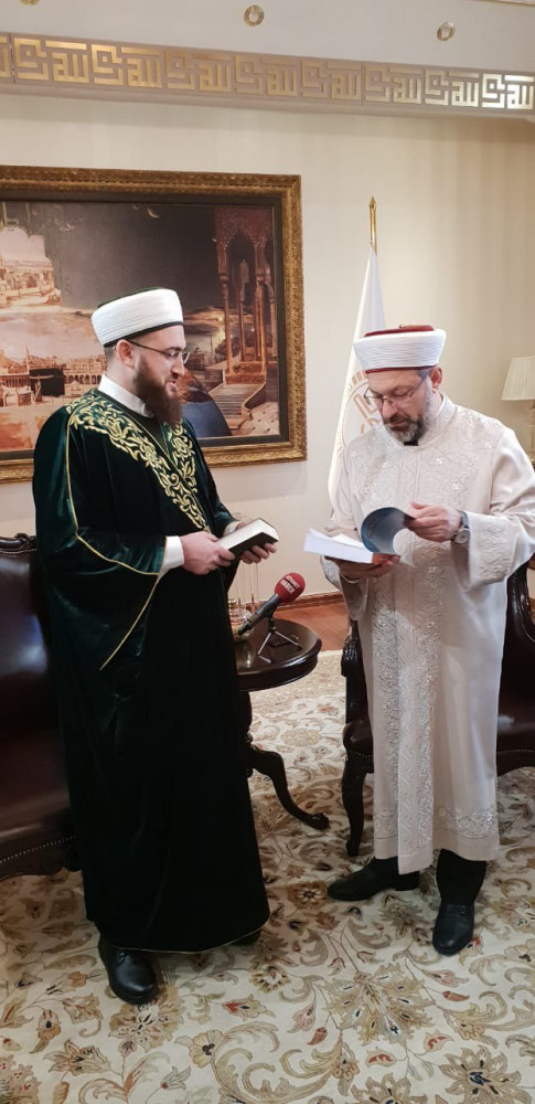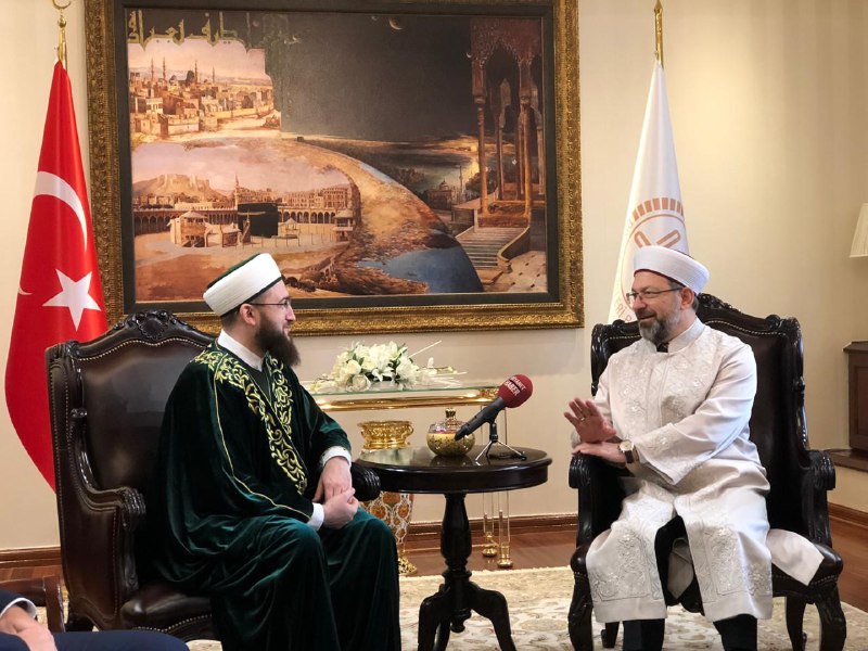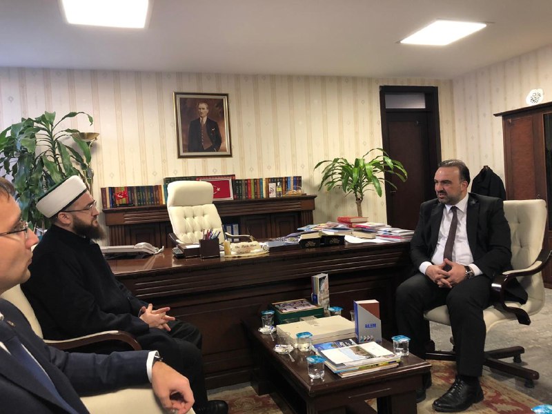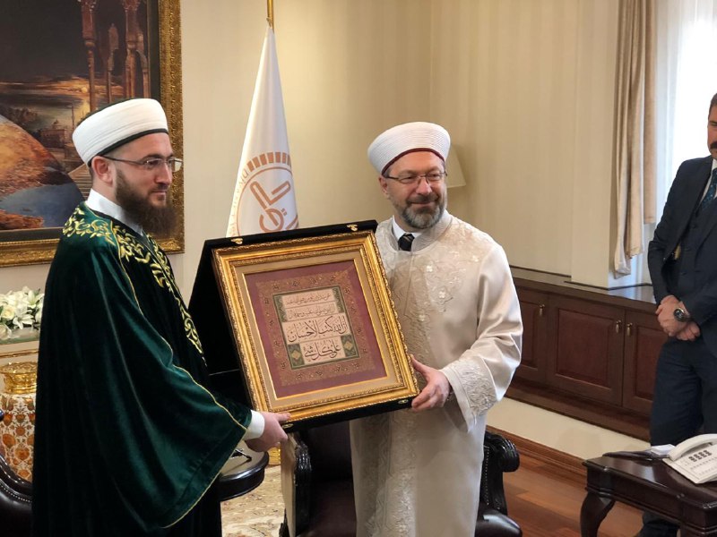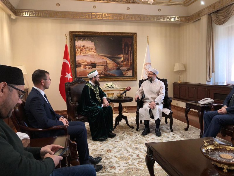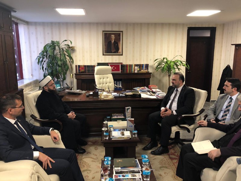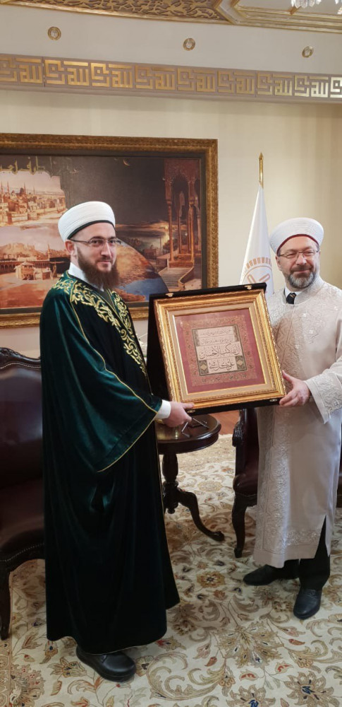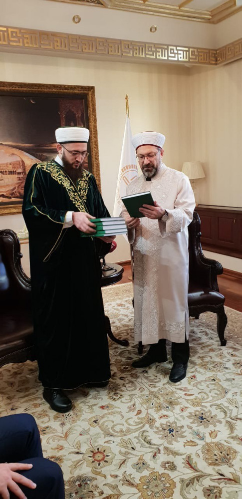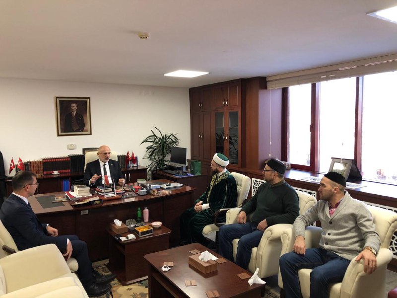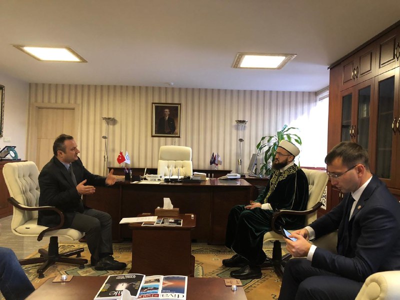 Далее деловая встреча продолжилась у министра по делам религий Али Эрбаша. В ходе встречи участники обсудили вопросы реализации сразу нескольких проектов муфтията, в том числе совместных с турецким министерством. Пользуясь случаем, Камиль хазрат Самигуллин от имени мусульман Татарстана поблагодарил Али бея за Куръан-хафизов, которые ежегодно приезжают в республику во время Рамадана, и помощь в обеспечении нуждающихся категорий населения мясом жертвенных животных на Курбан-байрам.