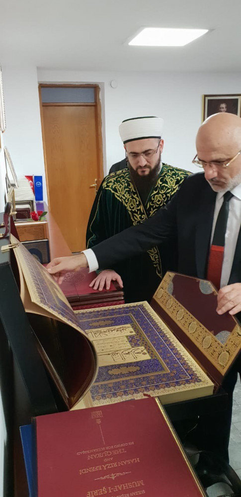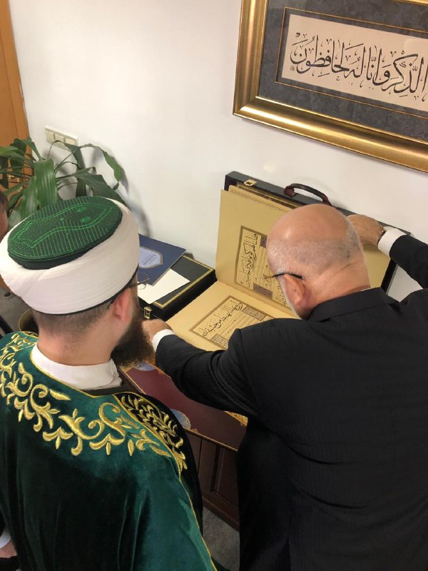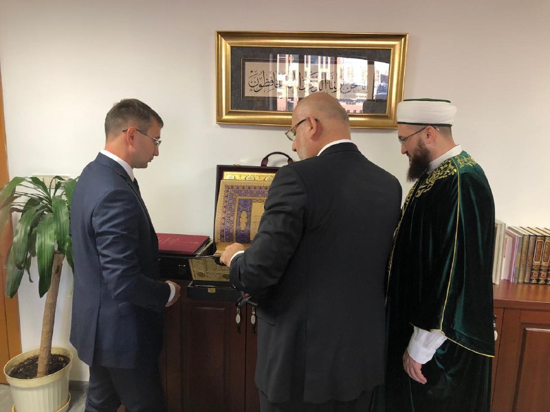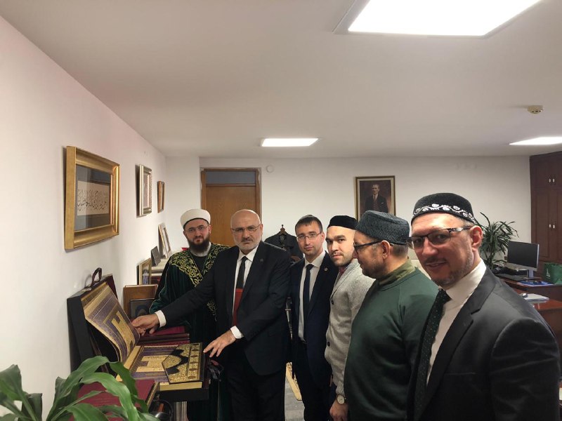 Сегодня, 3 джумадаль-ауаль, официальная делегация Духовного управления мусульман Республики Татарстан продолжила деловой визит в Турцию и посетила в числе прочих главу турецкой Комиссии по проверке изданий Куръана Усмана Шахина. Встреча прошла с целью профессиональной оценки изданий Куръана, выпущенных муфтиятом Татарстана – издания получили одобрение Комитета. В свою очередь, Усман бей выразил глубокий интерес к одному из известных трудов Шигабутдина Марджани по 10 кыраатам Куръана – он ведет научно-исследовательскую работу по этой теме. Поэтому в память о встрече официальная делегация под руководством Камиля хазрата Самигуллина преподнесла ему шеститомник Марджани.