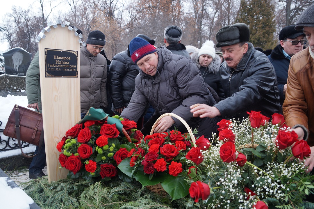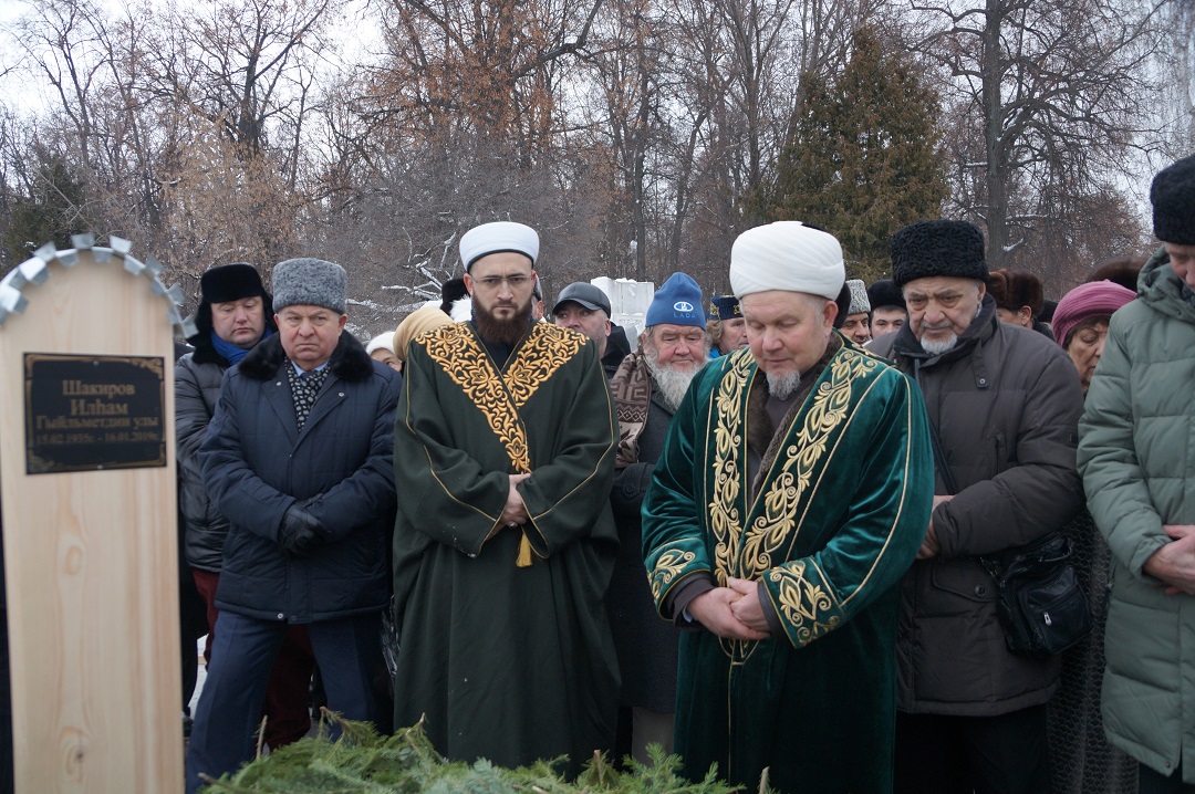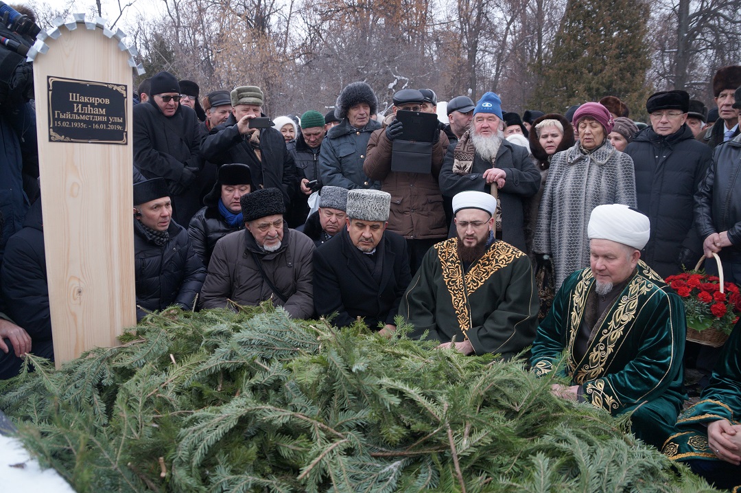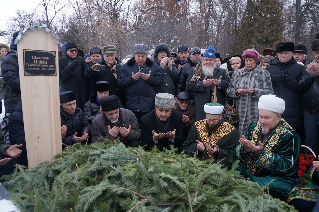 Сегодня, 12-го джумадаль-ауваль, татарский народ проводил в последний путь своего великого сына - Ильхама абый Шакирова. Разделить горечь этой невосполнимой утраты вместе с единоверцами и проститься с ним приехал также муфтий Татарстана Камиль хазрат Самигуллин, который совершил по усопшему джаназа-намаз - погребальную молитву во дворе мечети Марджани. В прощании с выдающимся татарским деятелем приняли участие также главный казый Татарстана Джалиль хазрат Фазлыев, заместители муфтия Рустам хазрат Валиулин, Рафик хазрат Мухаметшин, Мансур хазрат Джалялетдинов, директор медресе имени 1000-летия принятия ислама Ильяс хазрат Зиганшин, другие религиозные и государственные, общественные деятели, представители педагогической, писательской интеллигенции, шакирды...