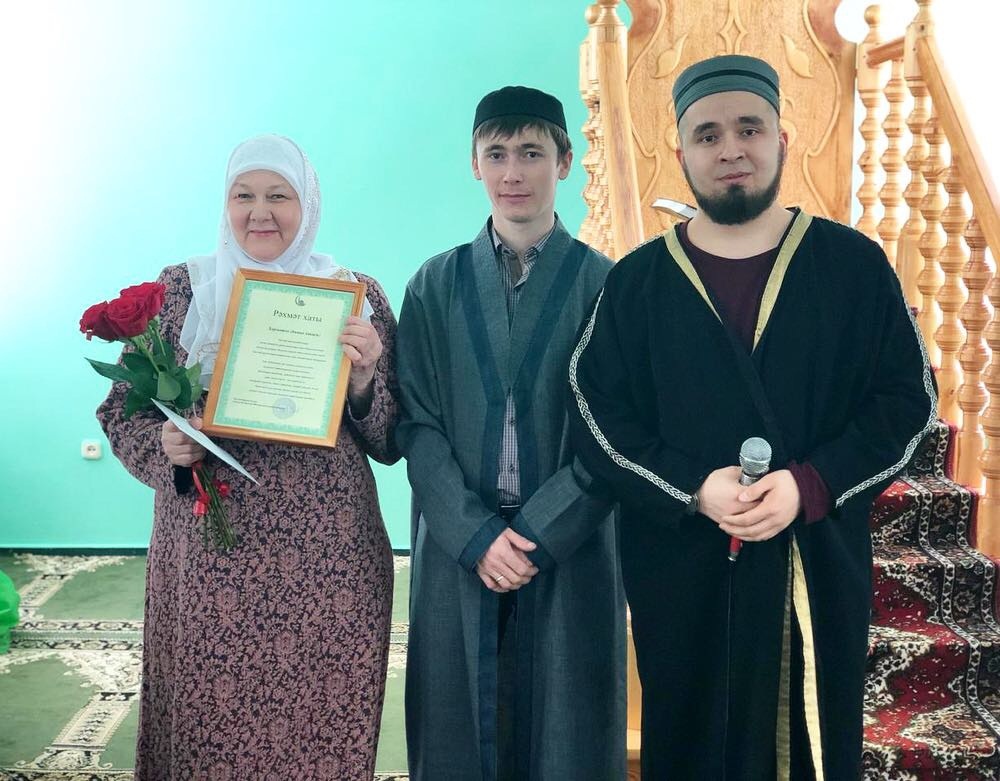 С приветственными словами к участницам обратились имам-хатыйбы мечетей «Иман» и «Энилэр» Адель хазрат Мухаметшин и Алмаз хазрат Сафиуллин. Они поздравили Амину ханум с 25-летием преподавательской деятельности, подарили ей цветы и вручили благодарственное письмо от имени имам-мухтасиба Чистопольского района Мухаммада хазрата Киямова.