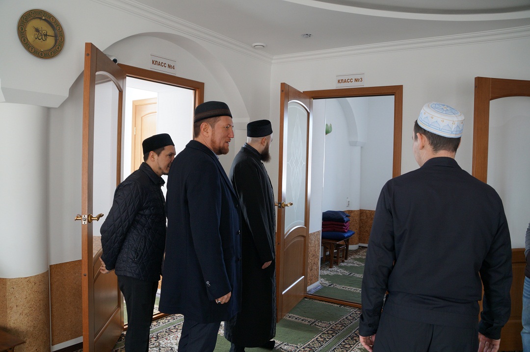 Далее глава мусульман республики ознакомился с библиотекой, молельными комнатами и учебными классами в мечети “Аль Фатиха”, которая функционирует при колонии. Стоит отметить, что мечеть возводилась руками осужденных. Здесь регулярно проводятся уроки по религиоведению, духовные беседы, проповеди и даже организуются конкурсы по чтению Куръана. Мечеть посещают около 260 мусульман, отбывающих наказание. Среди них есть и те, кто знает наизусть 4 джуза.