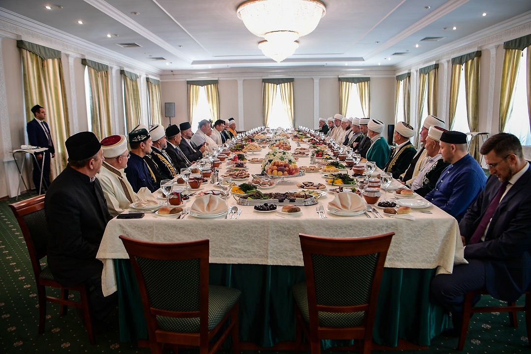 Сегодня, в 12-й день месяца Зуль-хиджа, Совет аксакалов (старейшин) Духовного управления мусульман РТ провел торжественный обед в мечети «Аль-Марджани» г. Казани. Почетными гостями маджлиса стали Президент Татарстана Рустам Минниханов, временно исполняющий обязанности губернатора Астраханской области Игорь Бабушкин, а также временно исполняющий обязанности Главы Республики Калмыкия Бату Хасиков. Напомним, что Игорь Бабушкин и Бату Хасиков в эти дни находятся в Татарстане с рабочим визитом. Уважаемых гостей встретил муфтий Республики Татарстан Камиль хазрат Самигуллин.