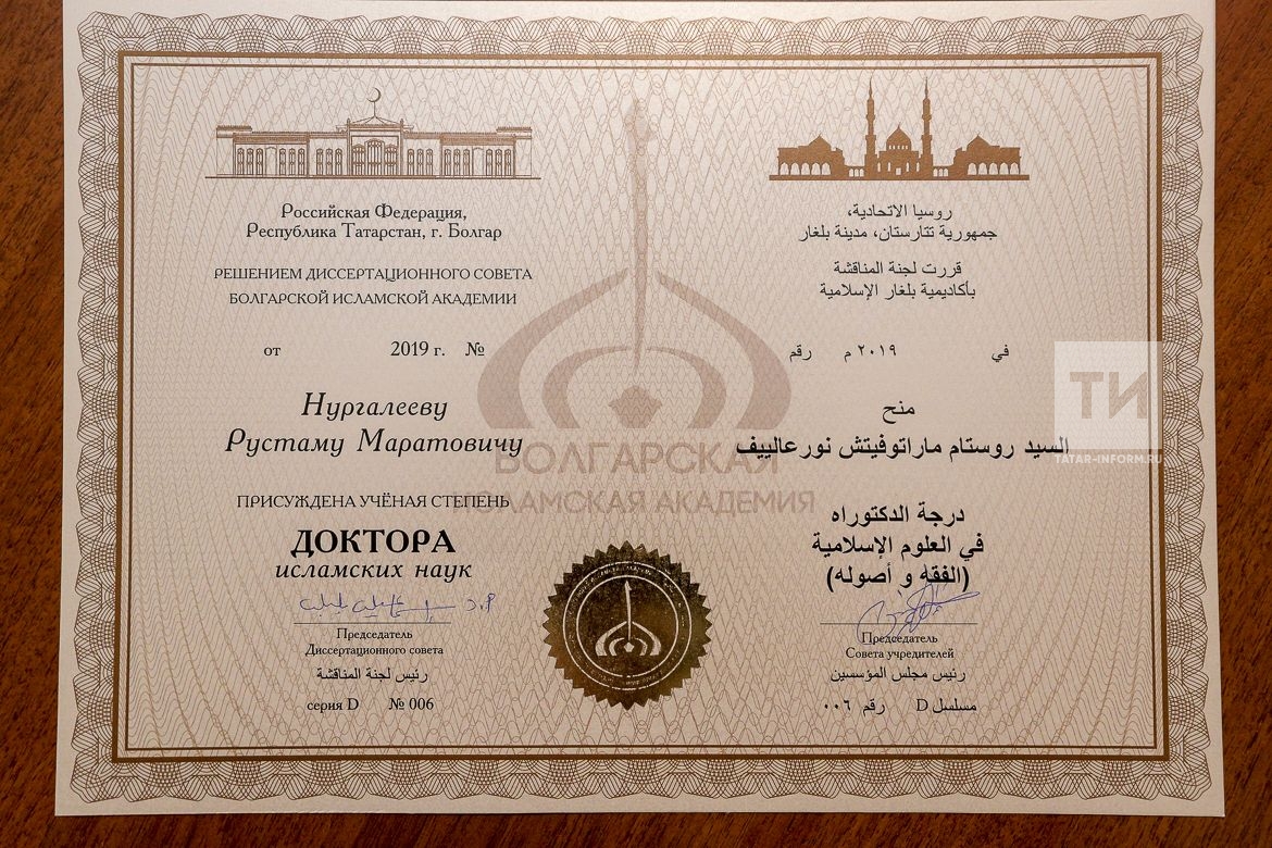 Темой диссертации Рустама Нургалеева стала: «Методологические примеры исламской юриспруденции Шигабутдина Марджани в труде «Благоразумие примечаний для устранения неясностей»: исследование и научное редактирование (тахкыйк)». Научная работа была написана на арабском языке. В процессе исследовательской работы Рустам хазрат Нургалеев тщательно изучил личность и труды Шигабутдина Марджани. «В русских источниках упоминается, что Марджани историк, философ, однако не говорится, что он был ученым в области исламского права. Я хотел восполнить этот пробел в изучении трудов татарского богослова», ‒ отметил соискатель.