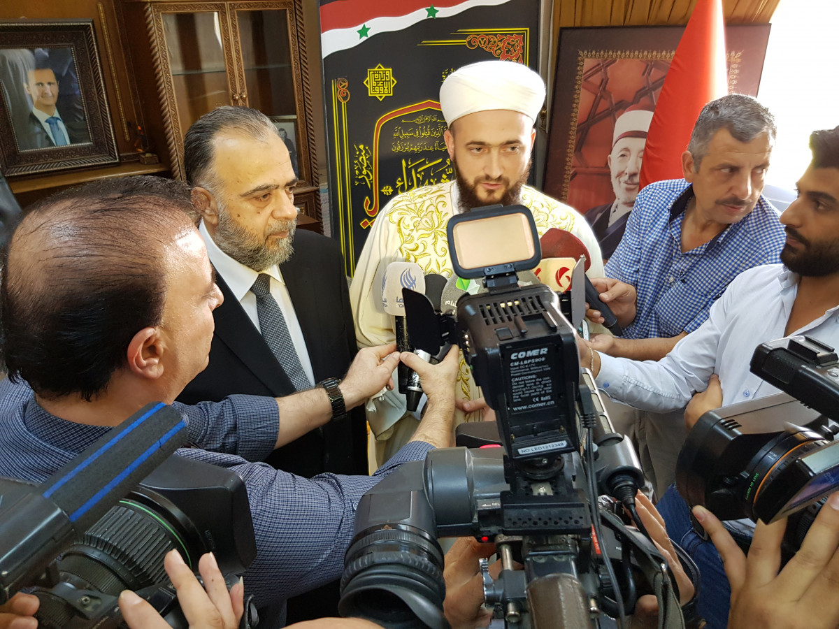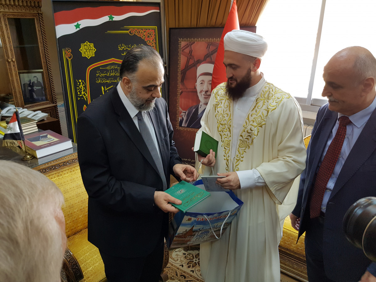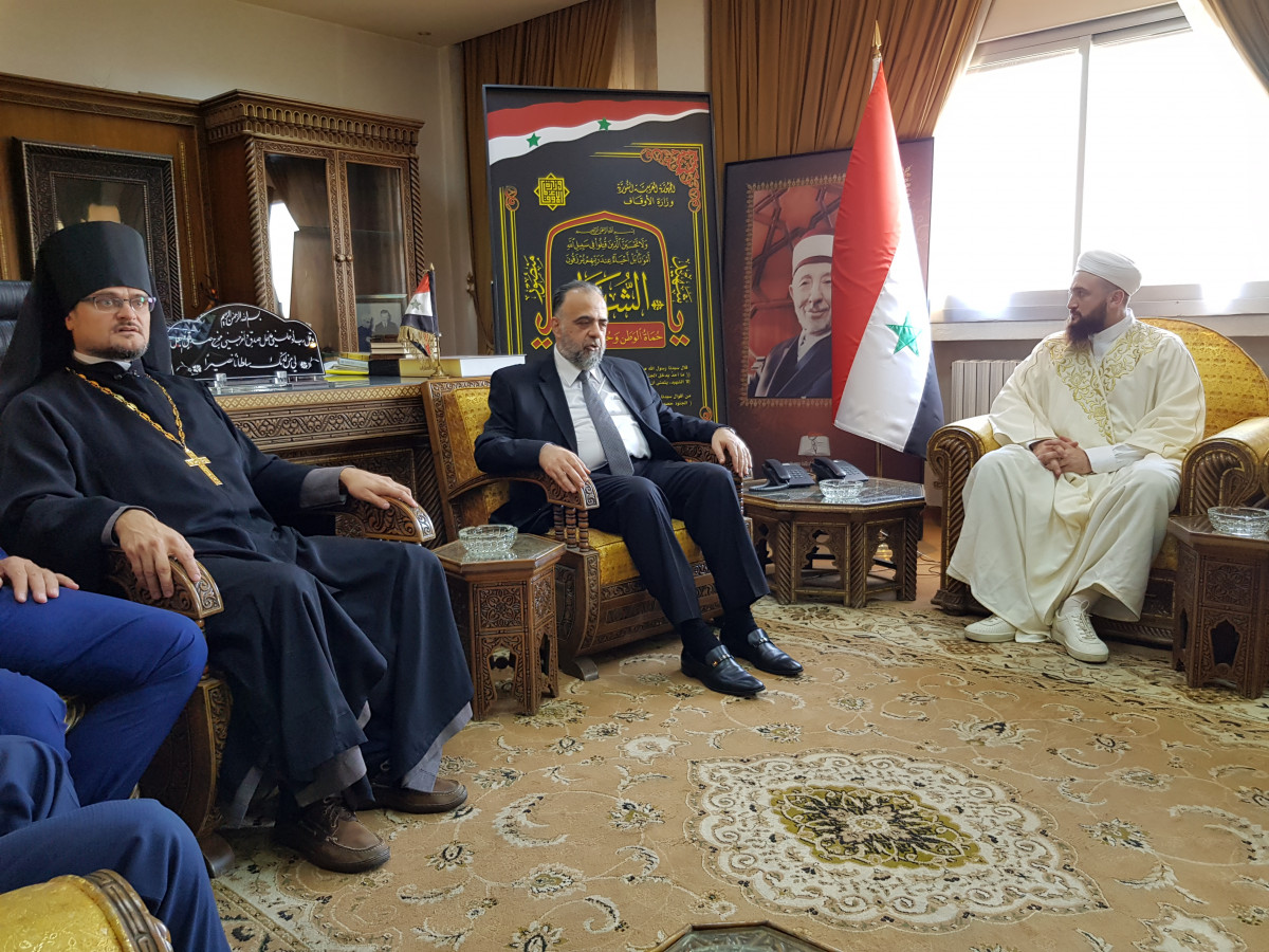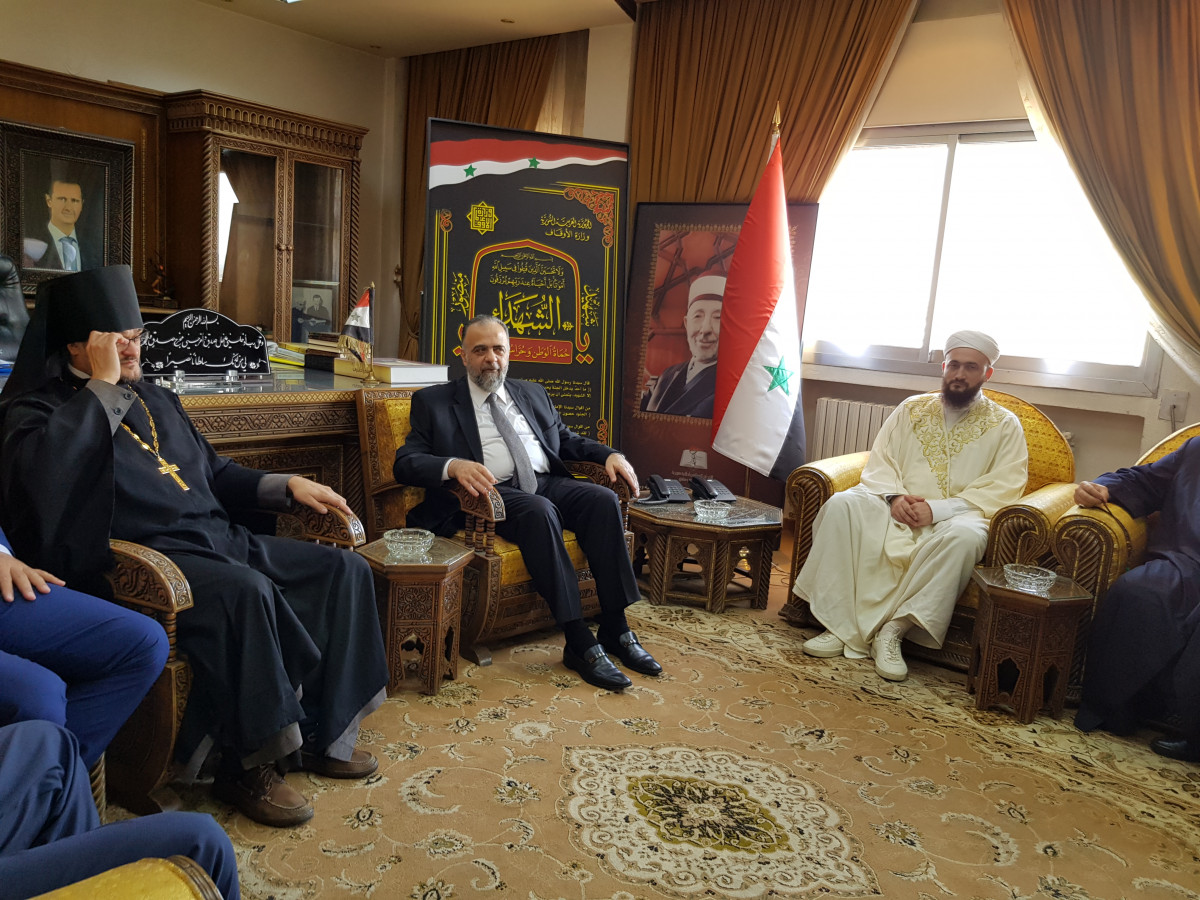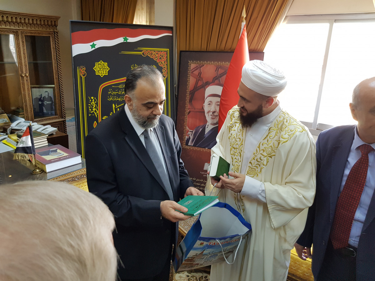 Сразу по прибытию в столицу Сирии российскую делегацию принял министр вакуфов Абдусаттар Сеид. Он выразил благодарность за поддержку и содействие всем участникам кампании по реставрации школы и, в частности, российским и татарстанским мусульманам, внесшим один из самых весомых вкладов. Единоверцев России на официальном приеме представлял Камиль хазрат Самигуллин. В своем ответном слове он выразил готовность ДУМ РТ оказывать поддержку мусульманским религиозным организациям Сирии, пригласил министра посетить Казань и предложил провести совместную научно-богословскую конференцию, отметив, что между исламскими учеными Сирии и Татарстана налажены меры сотрудничества.