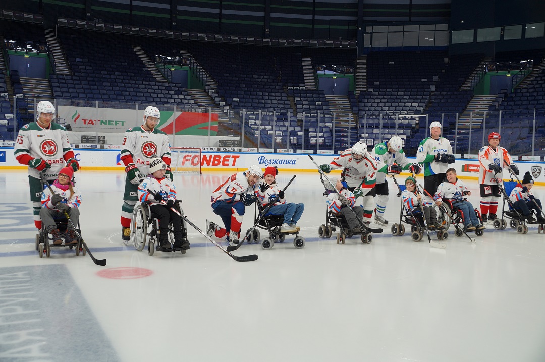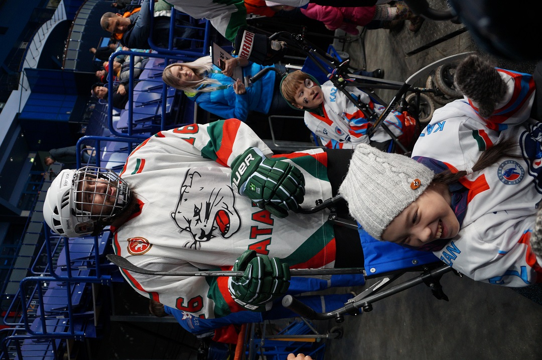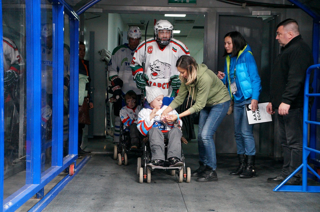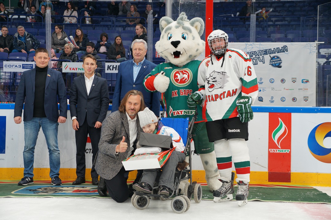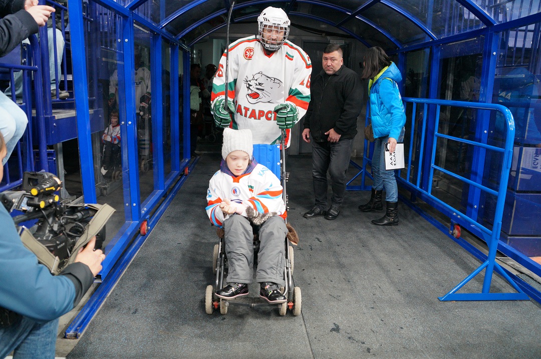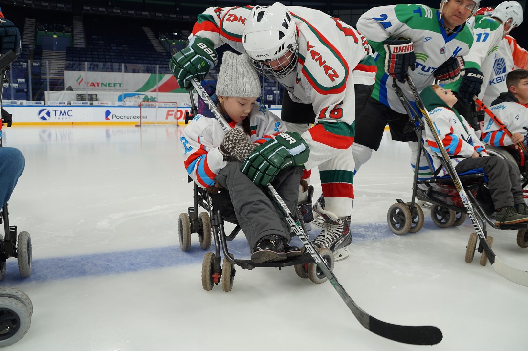 Сегодня, в Казани прошел благотворительный матч «Хоккей каждому» для детей с нарушениями опорно-двигательного аппарата. Матч был организован "Татнефть Арене" Ночной Хоккейной Лигой, Фондом "День добрых дел" и компанией "Даже если" в третий раз между двумя командами «Метеор» и «Торнадо». Каждого юного игрока на льду сопровождал "штурман", который и отвечал за его передвижение. В качестве штурманов играли хоккеисты «Ак Барса» – Владимир Ткачёв и Альберт Яруллин, а также игроки Ночной хоккейной лиги. В благотворительном матче принял участие также муфтий Камиль хазрат Самигуллин, легенда советского хоккея Александр Якушев, генеральный директор Ночной хоккейной лиги Игорь Бахмутов и др. Родители поддерживали своих детишек со скамеек запасных.