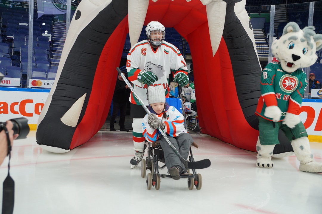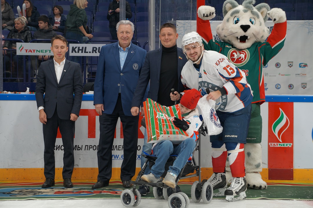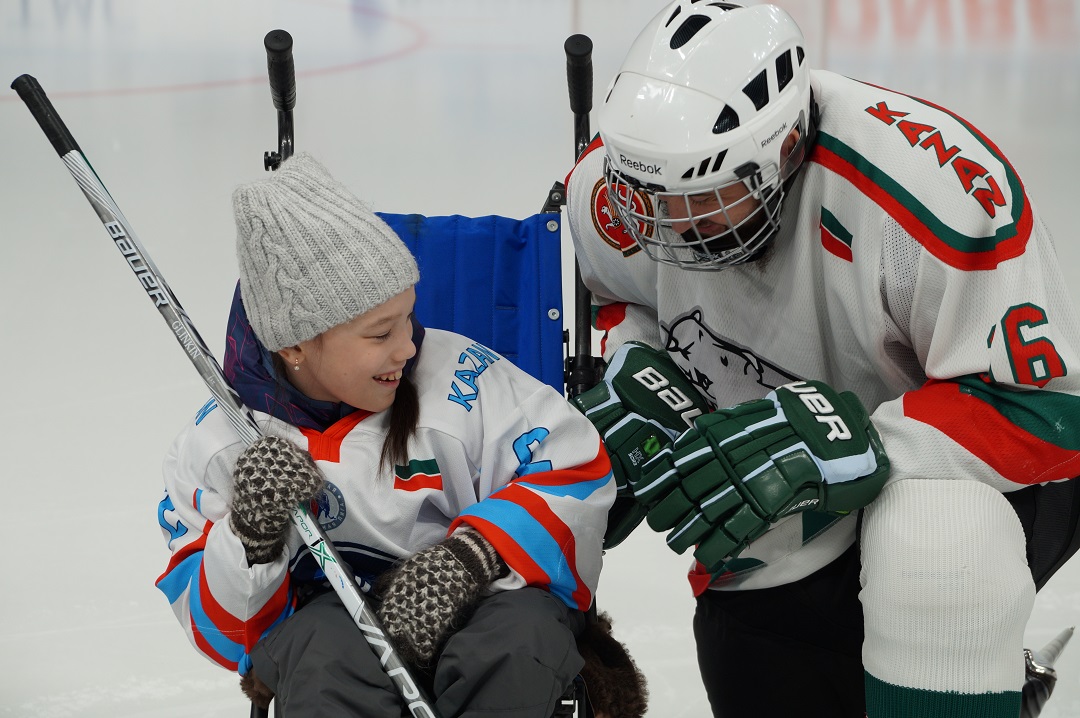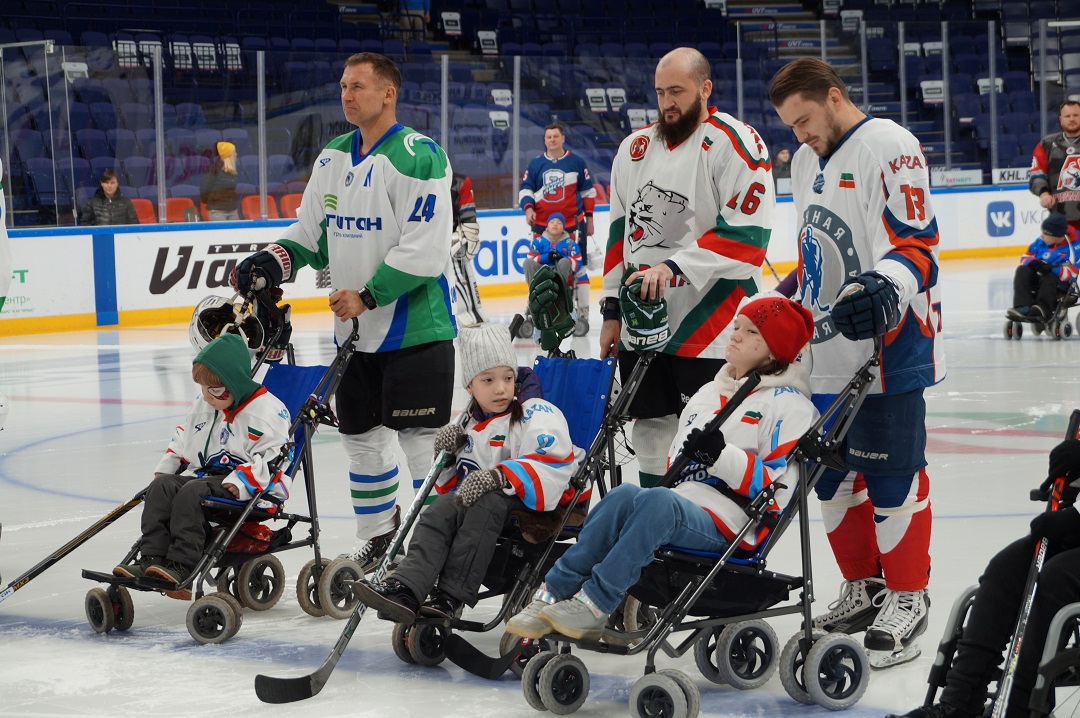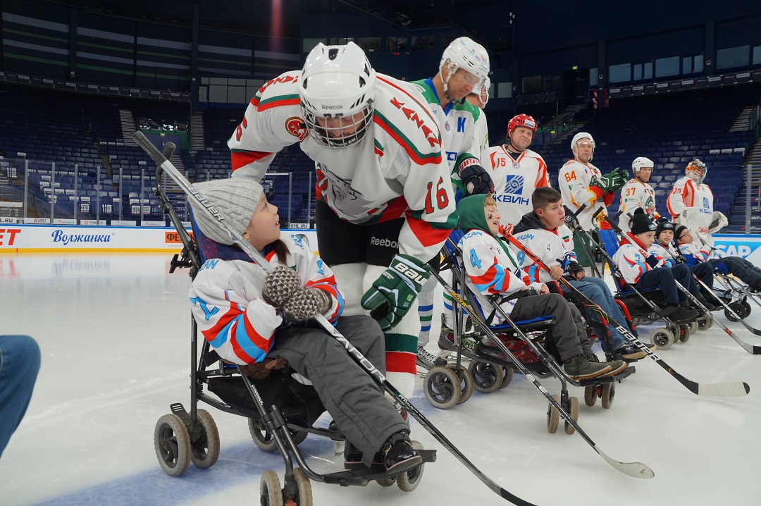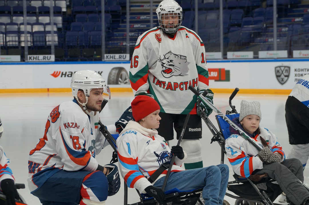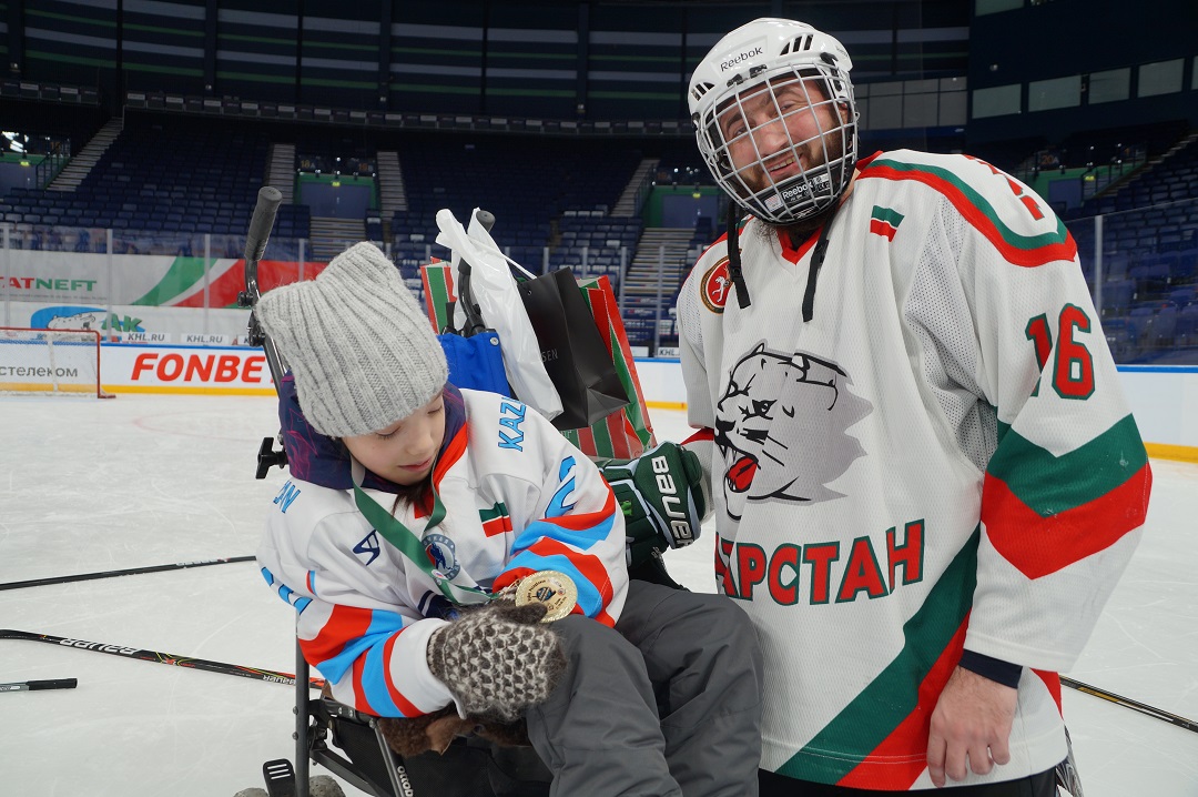 Сегодня, в Казани прошел благотворительный матч «Хоккей каждому» для детей с нарушениями опорно-двигательного аппарата. Матч был организован "Татнефть Арене" Ночной Хоккейной Лигой, Фондом "День добрых дел" и компанией "Даже если" в третий раз между двумя командами «Метеор» и «Торнадо». Каждого юного игрока на льду сопровождал "штурман", который и отвечал за его передвижение. В качестве штурманов играли хоккеисты «Ак Барса» – Владимир Ткачёв и Альберт Яруллин, а также игроки Ночной хоккейной лиги. В благотворительном матче принял участие также муфтий Камиль хазрат Самигуллин, легенда советского хоккея Александр Якушев, генеральный директор Ночной хоккейной лиги Игорь Бахмутов и др. Родители поддерживали своих детишек со скамеек запасных.