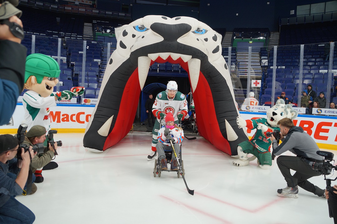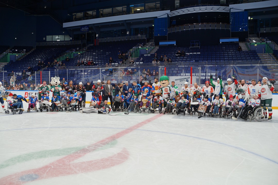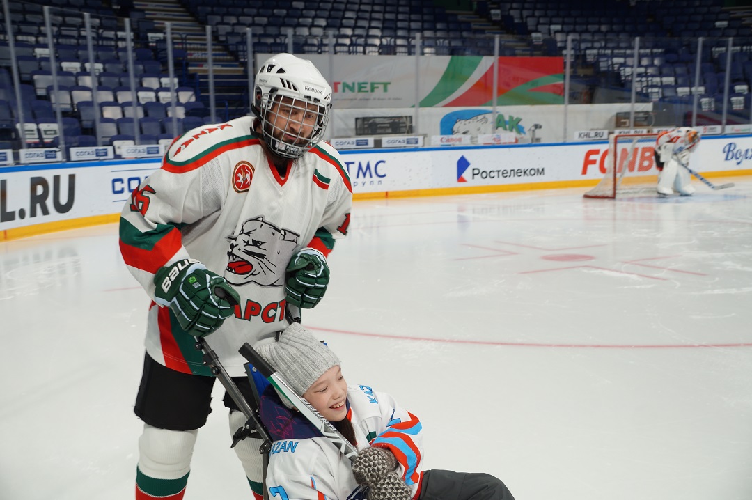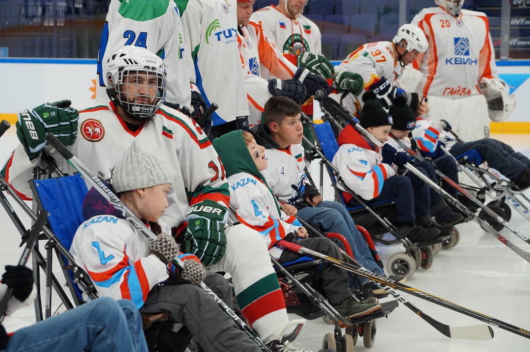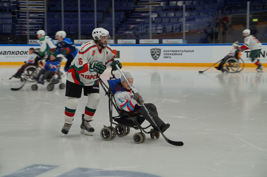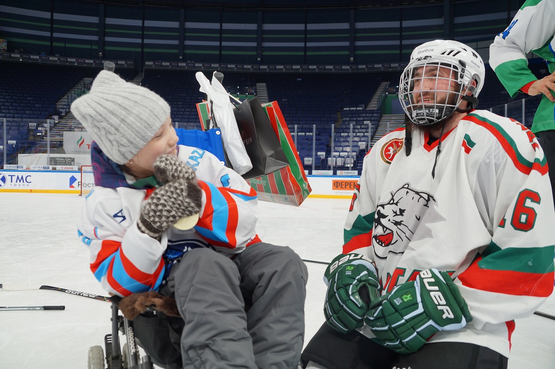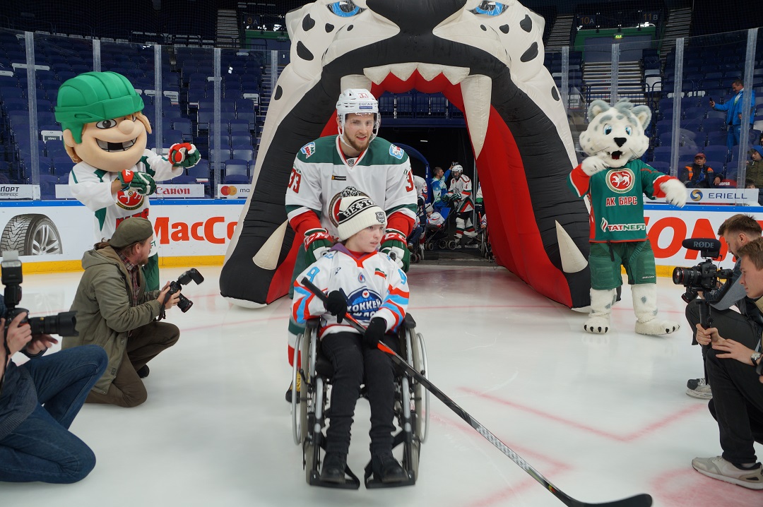 Сегодня, в Казани прошел благотворительный матч «Хоккей каждому» для детей с нарушениями опорно-двигательного аппарата. Матч был организован "Татнефть Арене" Ночной Хоккейной Лигой, Фондом "День добрых дел" и компанией "Даже если" в третий раз между двумя командами «Метеор» и «Торнадо». Каждого юного игрока на льду сопровождал "штурман", который и отвечал за его передвижение. В качестве штурманов играли хоккеисты «Ак Барса» – Владимир Ткачёв и Альберт Яруллин, а также игроки Ночной хоккейной лиги. В благотворительном матче принял участие также муфтий Камиль хазрат Самигуллин, легенда советского хоккея Александр Якушев, генеральный директор Ночной хоккейной лиги Игорь Бахмутов и др. Родители поддерживали своих детишек со скамеек запасных.