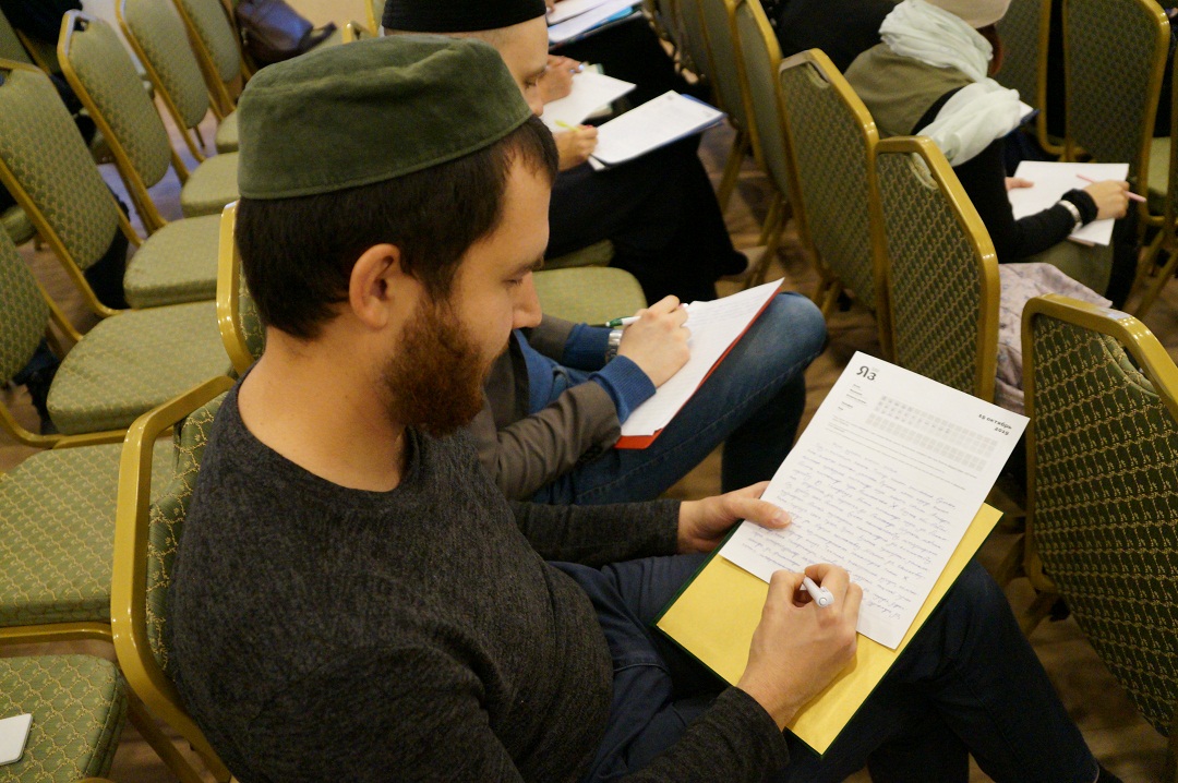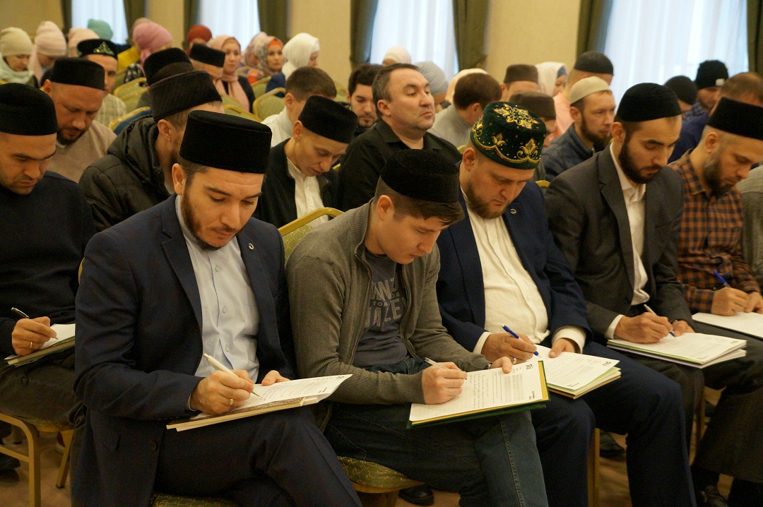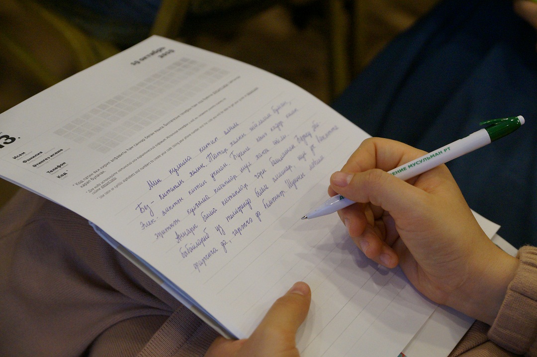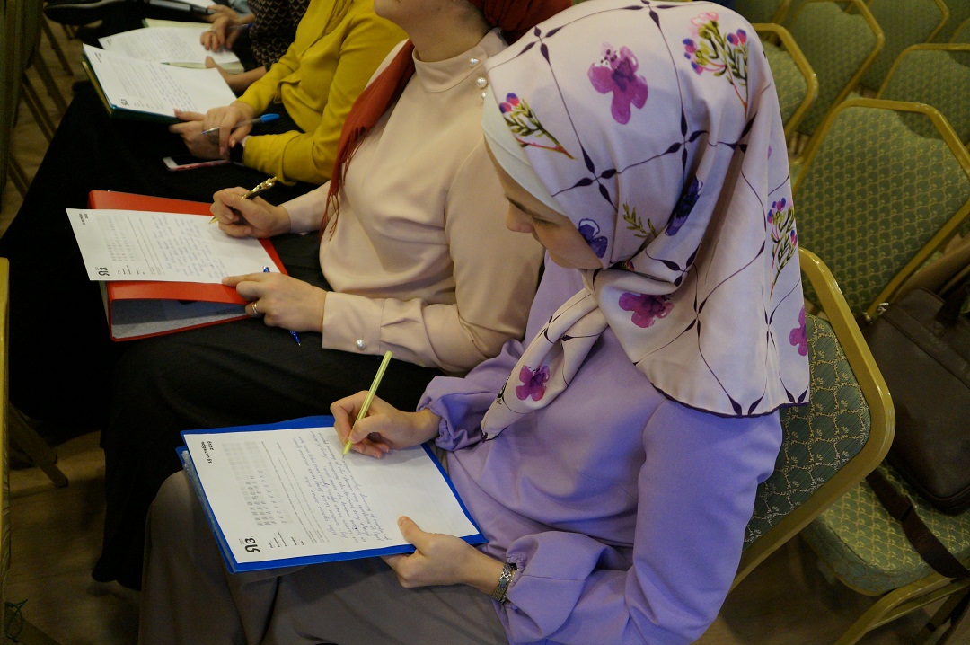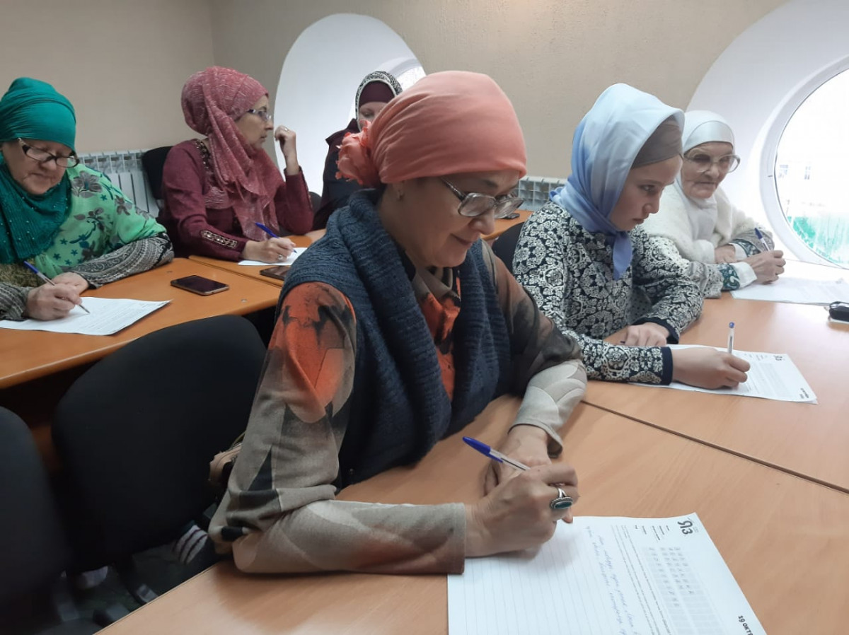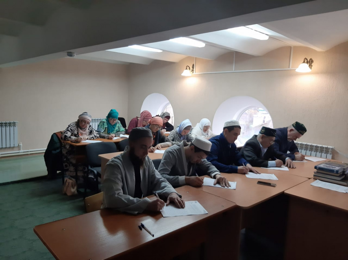 Сегодня, в 20-й день месяца сафар, в конференц-зале Духовного управления мусульман Республики Татарстан прошла образовательная акция по проверке грамотности на татарском языке «Татарча диктант». Религиозные деятели, а также руководители и сотрудники аппарата муфтията и его учрежденных организаций: Благотворительного фонда «Закят», Комитета по стандарту «Халяль», хадж-оператора «ДУМ РТ Хадж», Фонда «Вакф РТ», Издательского дома «Хузур» – всего около 100 человек попробовали свои силы в написании диктанта на татарском языке. Любопытно, что принять участие в акции изъявили желание сотрудники муфтията и других национальностей: русские, арабы, таджики и др. Участники акции написали отрывок из произведения «Мин кулыма китап алам» известного татарского писателя Роберта Миннуллина. Текст диктовал первый заместитель муфтия Татарстана Рустам хазрат Валиулин. Примечательно, что в этом году к акции присоединись также 25 мухтасибатов Татарстана. Наибольшую активность в написании "Контрольной работы" проявили имамы и прихожане мечетей Казани, Нурлатского, Елабужского, Бавлинского, Арского, Бугульминского, Мензелинского, Буинского, Сабинского, Тюлячинского, Актанышского, Аксубаевского, Верхнеуслонского и других районов. Таким образом, муфтият РТ уже во второй раз стал одной из площадок проведения акции.
