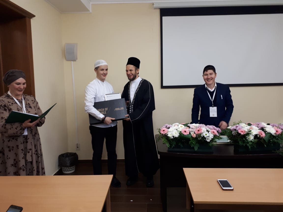 Обладателям первого места ДУМ РТ вручены айпады, за второе – ноутбуки, за третье – мобильные телефоны. Абсолютным победителем Республиканской олимпиады по исламским дисциплинам и арабскому языку стал Шамиль Имамов. Он получил путевку в хадж. Шамиль Имамов - студент 3-го курса медресе "Мухаммадия". Сам он из города Димитровград Ульяновской области. Ему 22 года.