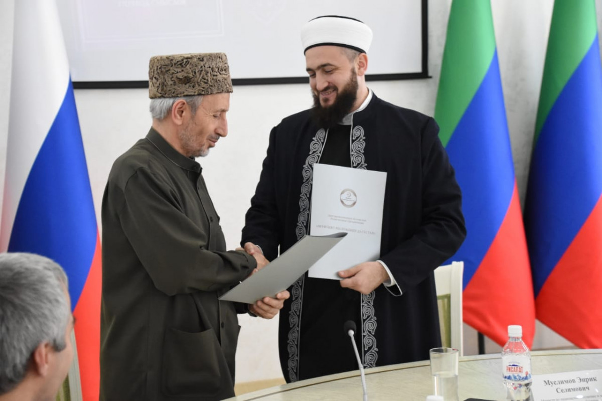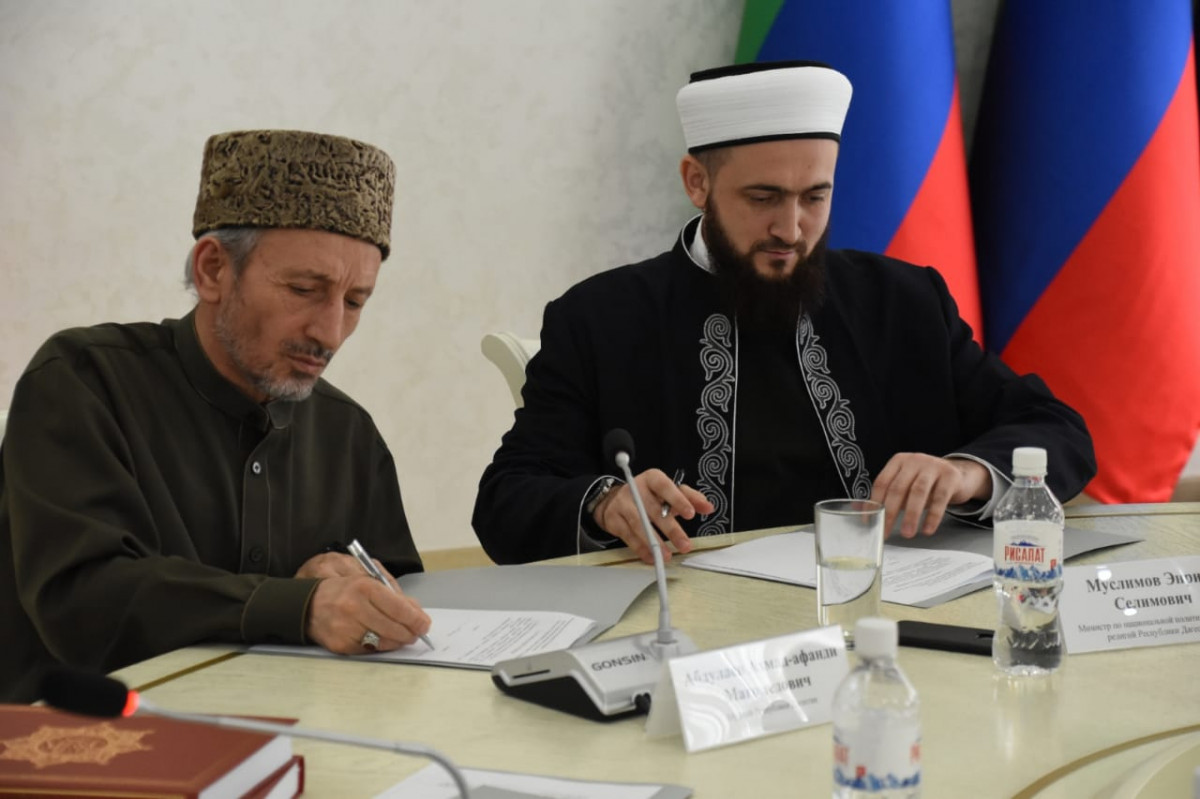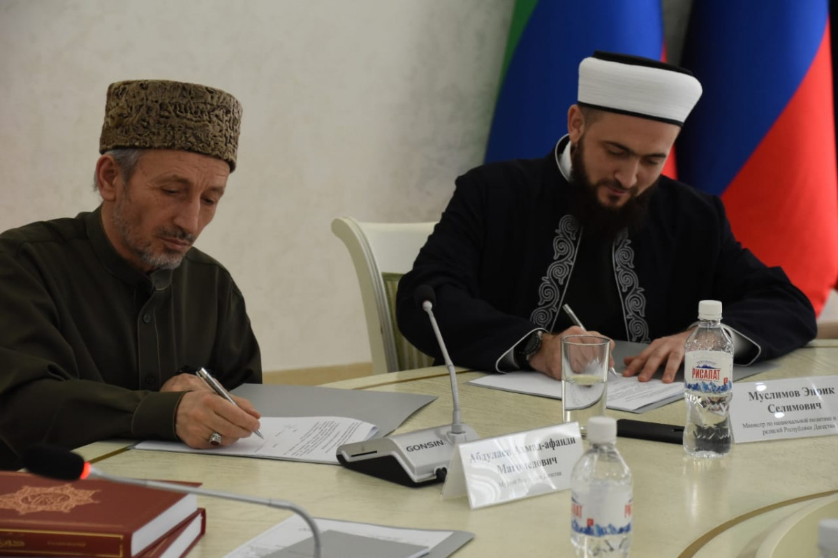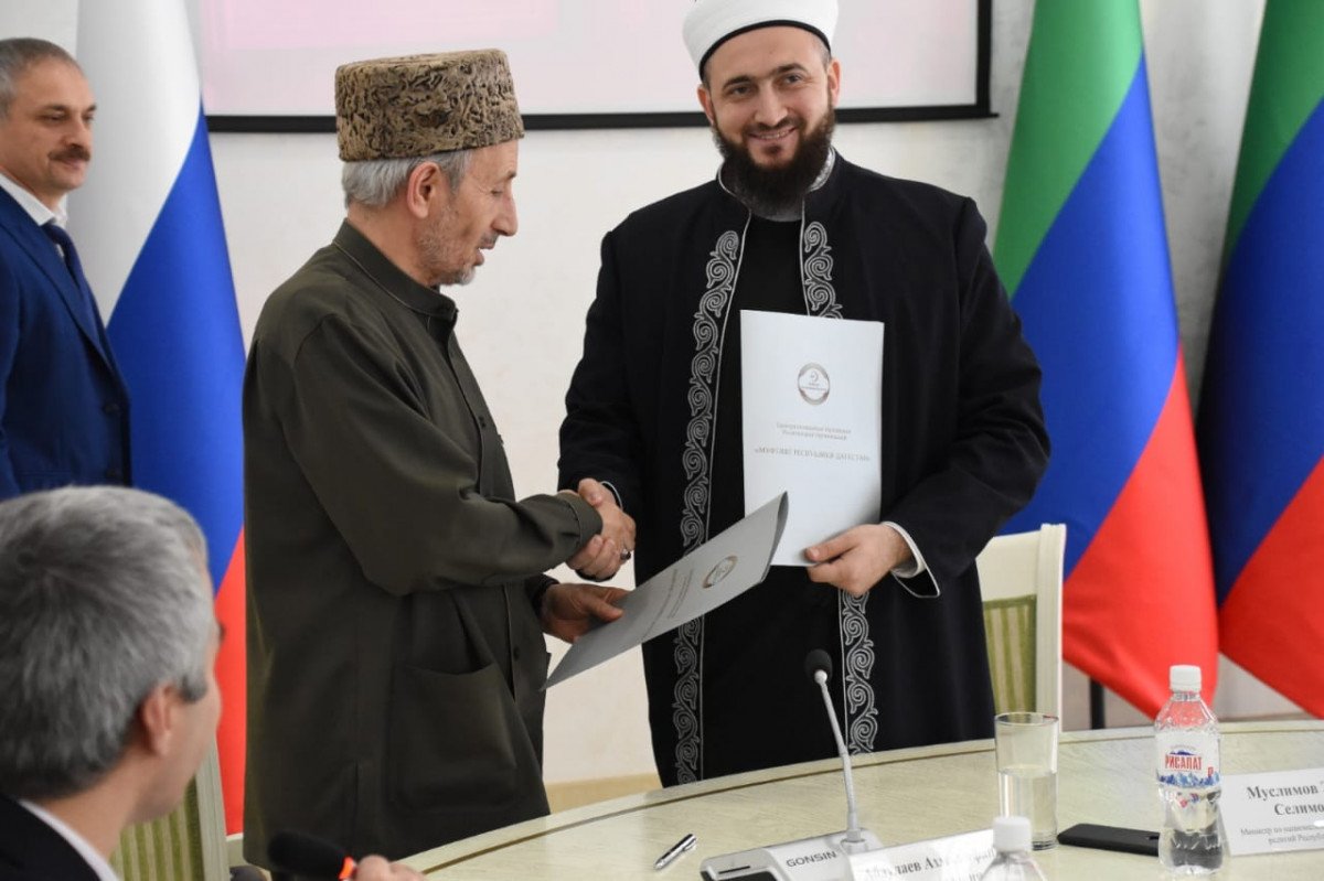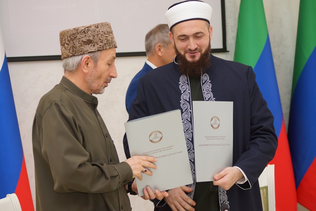 Сегодня, в 10-й день месяца раби аль-ахир (7 декабря), в Махачкале состоялось подписание соглашения о сотрудничестве между двумя религиозными организациями – Духовными управлениями мусульман Республики Татарстан и Республики Дагестан. Подписи под документом поставили муфтии регионов Камиль хазрат Самигуллин и шейх Ахмад афанди Абдулаев. Встреча прошла в рамках официальной презентации тафсира Куръана на русском языке – издания «Калям Шариф. Перевод смыслов», подготовленного ДУМ РТ.