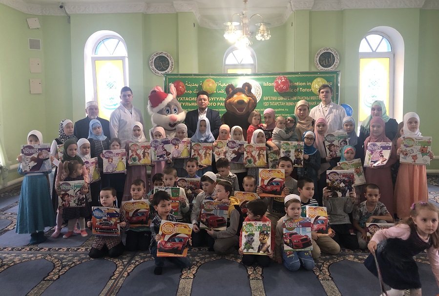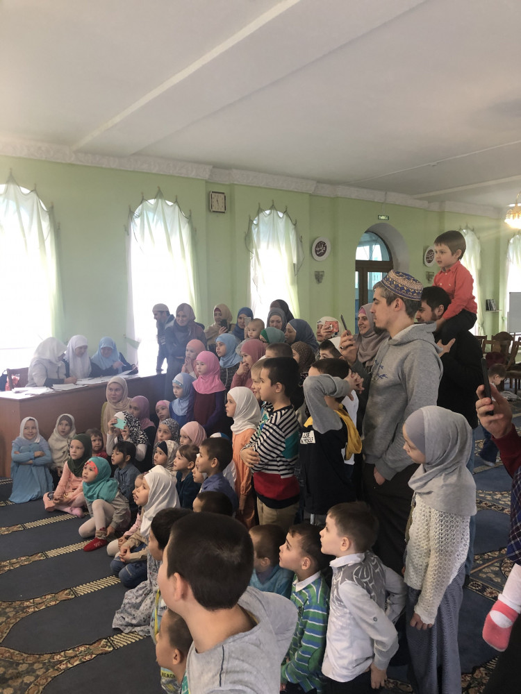 Вчера, в 24-й день джумада аль-уля (19-го января), в Центральной мечети Бугульминского мухтасибата прошел детский праздник «Мой любимый арабский язык». Приветствуя участников мероприятия, которых собралось около сотни, имам-мухтасиб района Рамиль хазрат Хуснутдинов напомнил, что приобретение знаний является обязанностью каждого мусульманина, и что Священный Куръан был ниспослан человечеству на арабском языке. Кроме того, отметил он, на арабском языке говорил наш любимый Пророк Мухаммад ﷺ, арабской письменностью владели наши предки. После содержательного приветствия, юные мусульмане приступили к соревнованиям - команда девочек «النجم» и команда мальчиков «صاعقة» потягались знаниями в области Куръана, арабской лексики и алфавита. Также детей порадовали игры с участием ростовых кукол, научно-популярные опыты и подарки.