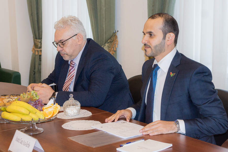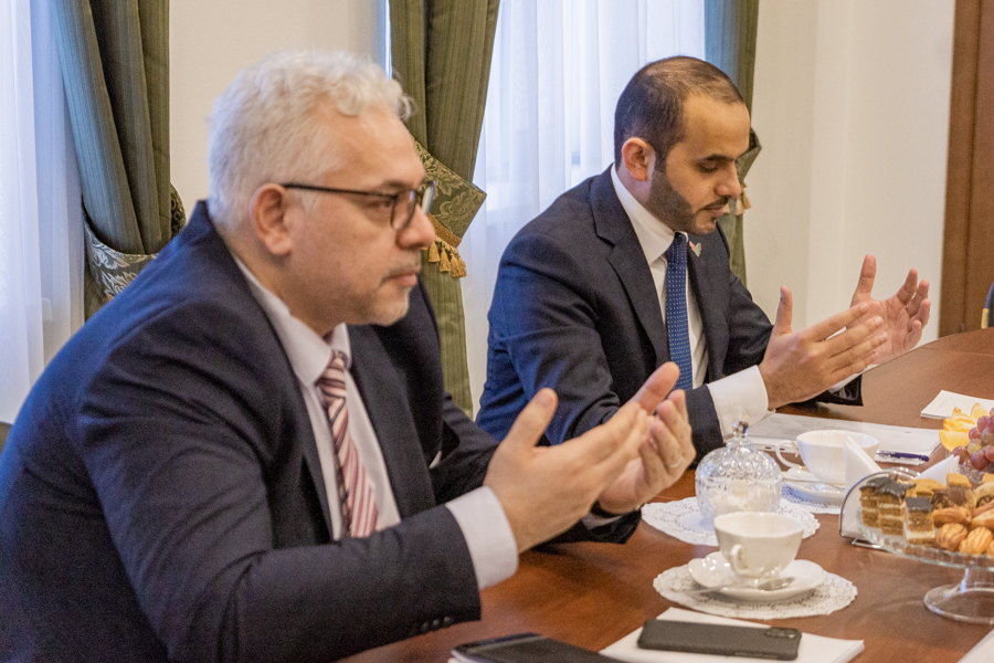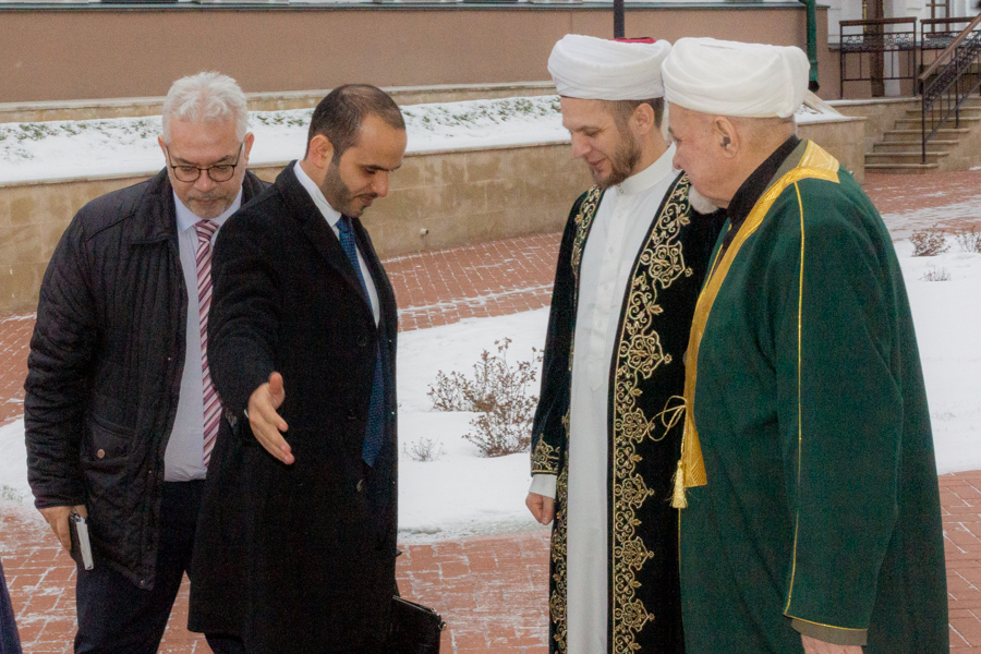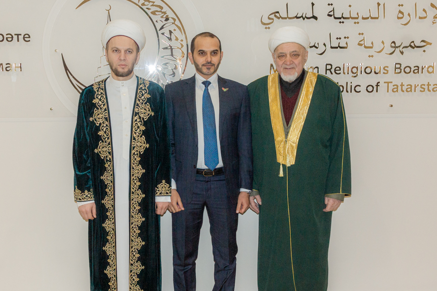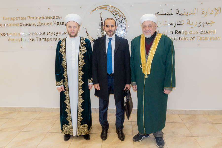Сегодня, в 28-ой день месяца Джумада аль-уля (23 января), в резиденции Духовного управления мусульман Республики Татарстан состоялась встреча с представителями посольства Объединенных Арабских Эмиратов в России – первым секретарем консула, руководителем отдела экономики и торговли Ахмадом Саидом Алькетби и специалистом по работе с общественностью Шаатом Хайсамом Хамедом. Гостей встретил первый заместитель муфтия Татарстана Рустем хазрат Валиулин. Во встрече также приняли участие заместитель директора издательского дома «Хузур» Руслан Хисамов, председатель Совета аксакалов ДУМ РТ Айрат хазрат Аюпов и др.