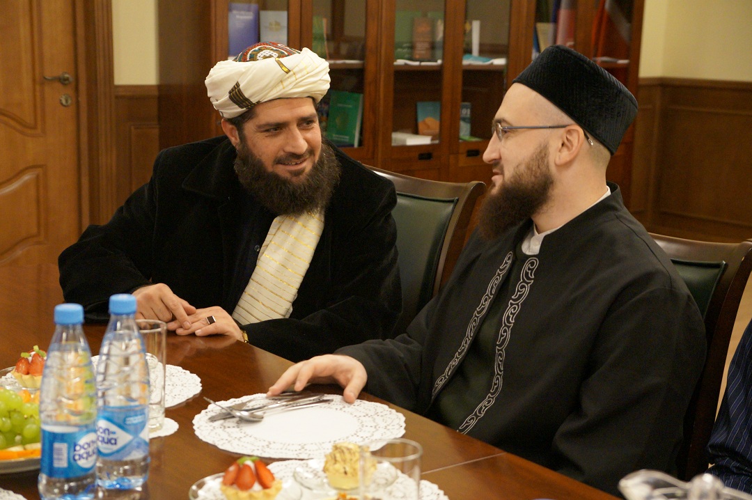 Руководитель медресе Ильяс хазрат Зиганшин выразил благодарность Муфтию за встречу с шакирдами и подарил ему экземпляр книги татарского просветителя Каюма Насыри, которая хранилась в библиотеке медресе.