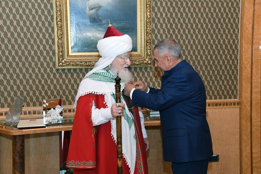 В ходе встречи Раис Татарстана вручил Талгату хазрату Таджуддину государственную награду Республики Татарстан – медаль ордена «За заслуги перед Республикой Татарстан». Награда вручены за особый вклад в сохранение и развитие духовно-нравственных традиций, укрепление межнационального и межконфессионального мира и согласия.