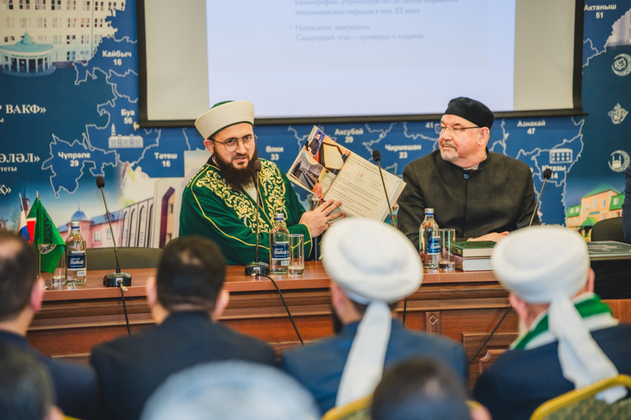 Муфтий Камиль хазрат подробно рассказал гостям о ключевых направлениях деятельности муфтията: он ознакомил присутствующих с достижениями ДУМ РТ в различных сферах, включая корановедение, издательское дело и др. Особое внимание гостей привлёк уникальный рукописный Куръан, созданный под руководством шейха Маъмуна ар-Рави казанскими специалистами. В ходе встречи Камиль хазрат подчеркнул его значимость для мусульман России. Он является первым современным отечественным изданием.